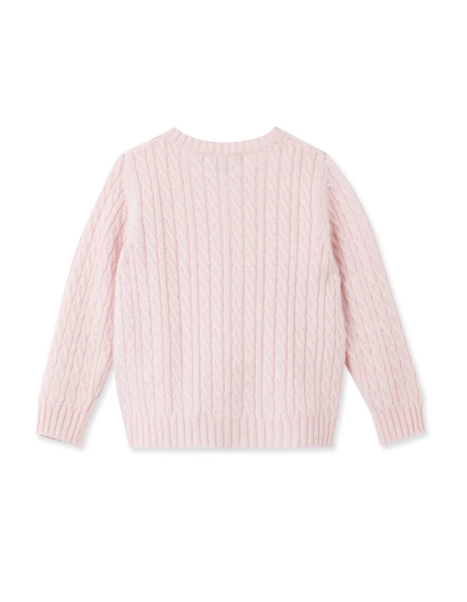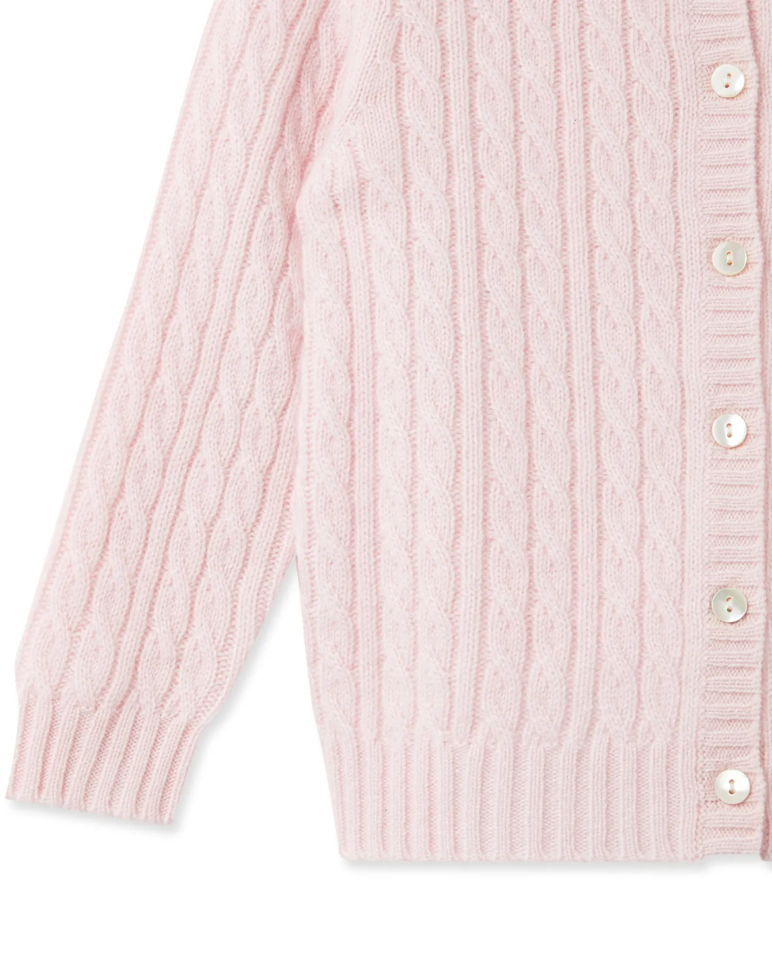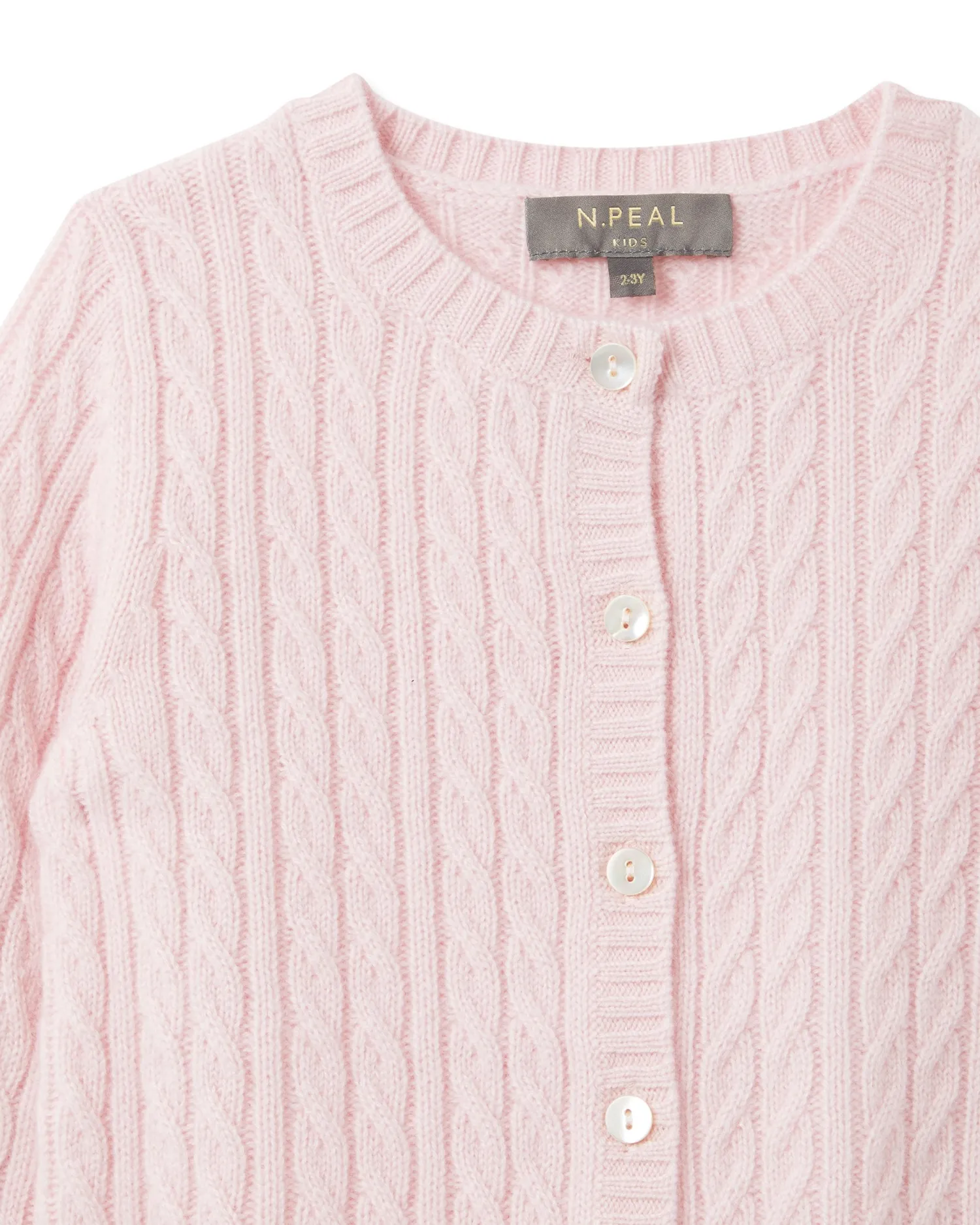 Exquisite cable design in the shape of a fabulous cashmere cardigan for children. Made from 100% Organic Mongolian Cashmere – Beautiful mini cable knit – With matching rib knit on hem, cuffs, placket and collar – Five pearl buttons to close – Fabulous worn with matching N.Peal cashmere pieces – Super soft and comfortable against the skin- Care: Hand Wash Organic cashmere: organic dyes and detergents, free from fertilizer and pesticides, find out more here