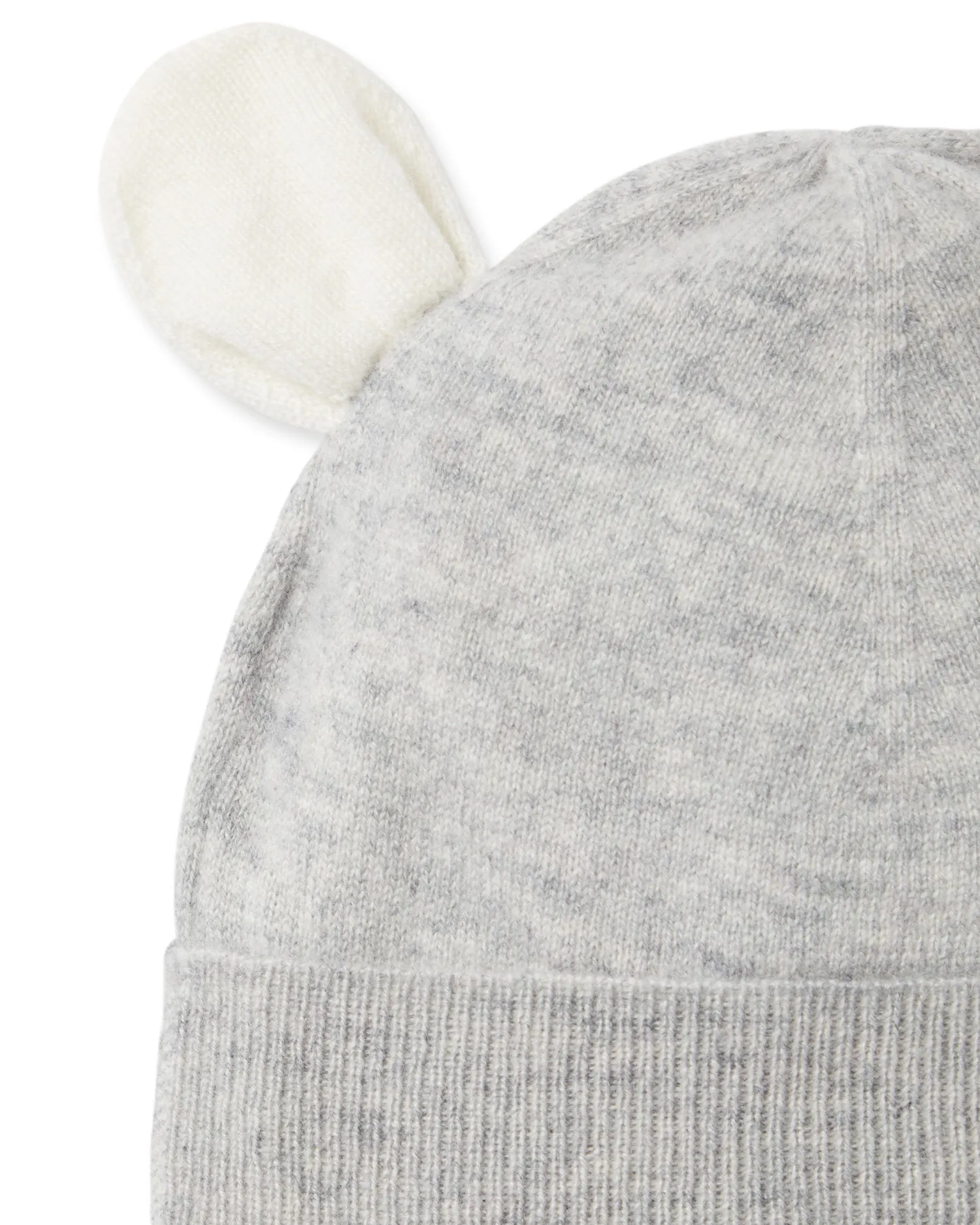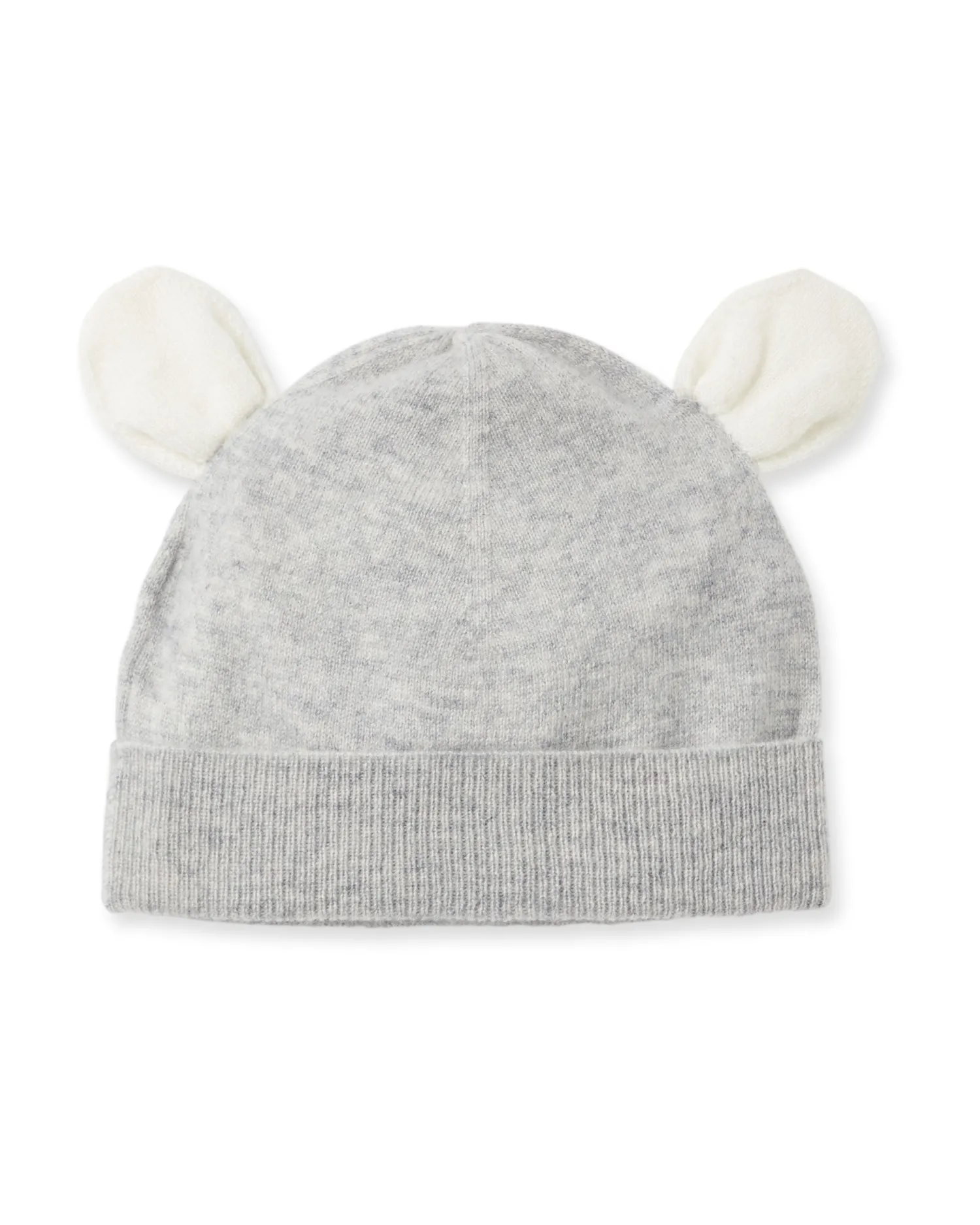Quite simply the most gorgeous cashmere baby hat. Made from 100% Organic Mongolian Cashmere – Supremely soft and comfortable against the skin – Rib stitch turn up – New ivory white contrast ears for the cute factor – Would make a great baby gift- Available in one size, 0-6 months- Care: Hand Wash Organic cashmere: organic dyes and detergents, free from fertilizer and pesticides, find out more here