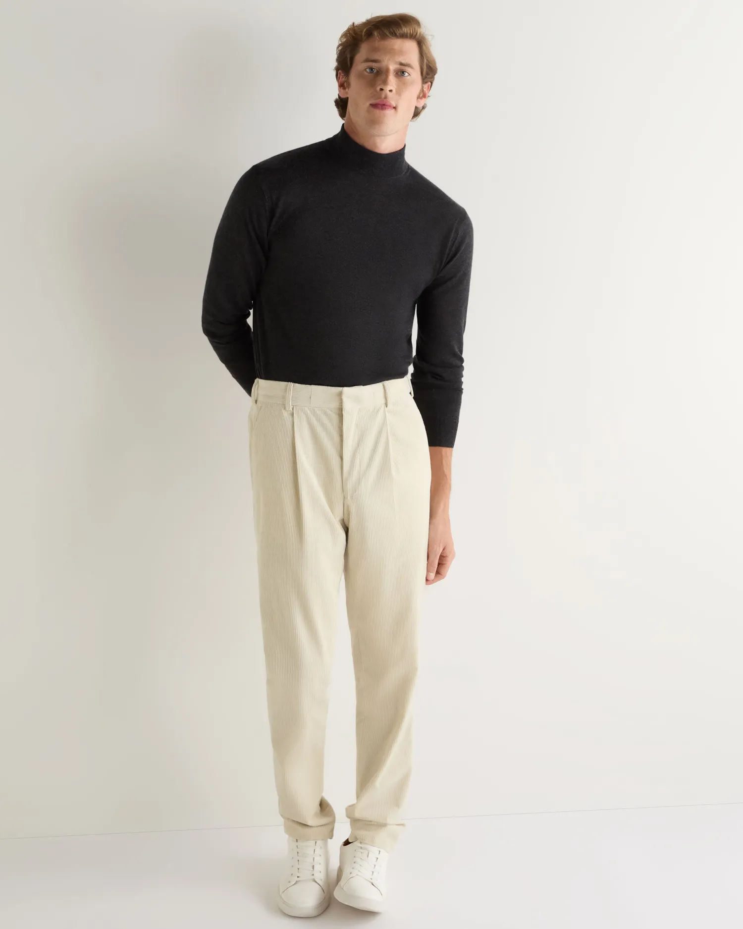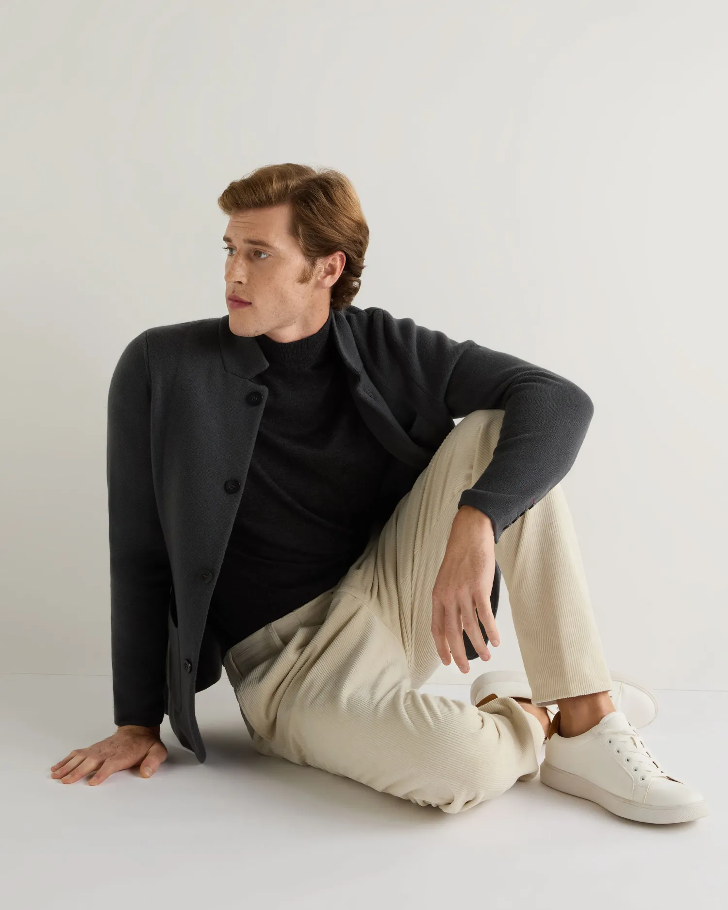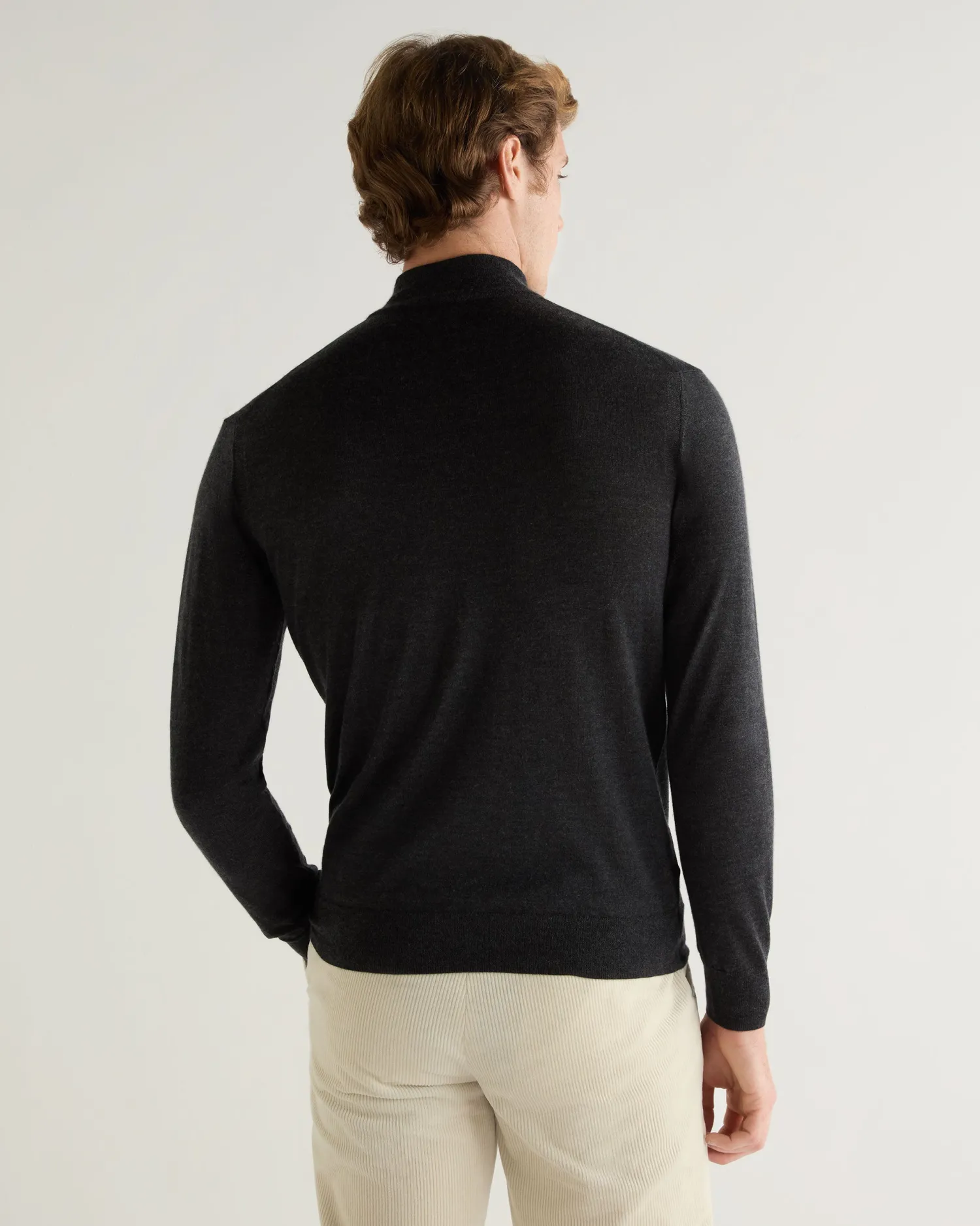 A welcome addition to our fine gauge collection for this season. Made from 70% cashmere and 30% Silk – Beautiful roll neck style – Supersoft against the skin – Wonderful layering piece- Our fine gauge products have a naturally slimmer fit, if you’d like a looser fit (like our other products) or are between sizes, we suggest you size up- Model is wearing size Medium- Care: Hand WashnFind our full range of Men’s Fine Gauge Cashmere here.