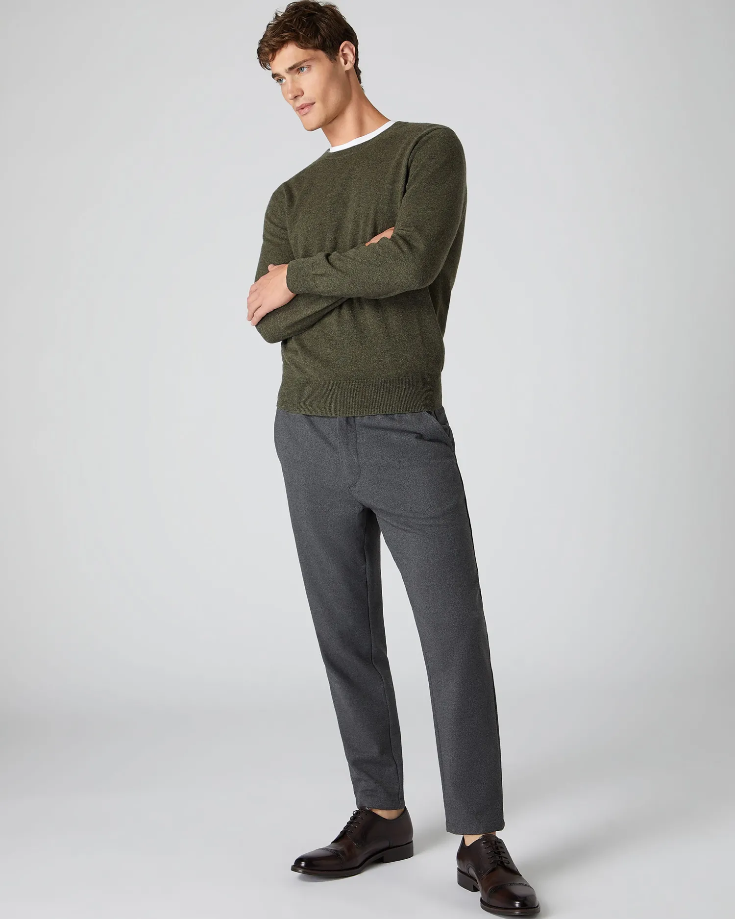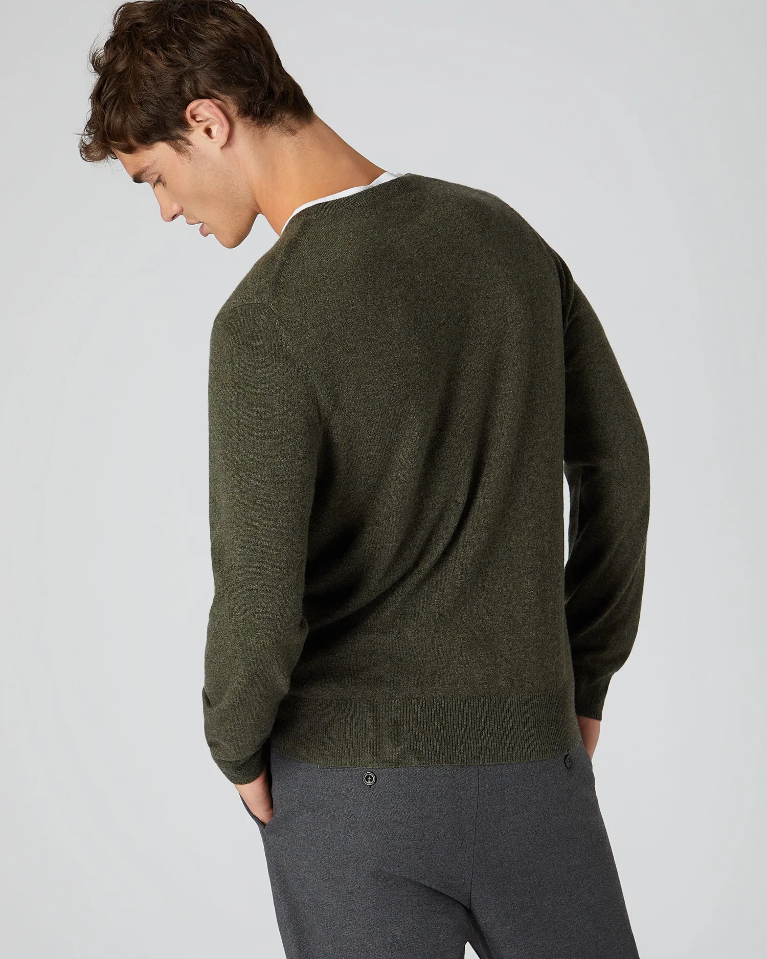 N.Peal’s best selling Oxford round neck cashmere sweater in 1ply, true luxury in cashmere. Crafted from 100% Mongolian Organic Cashmere – The most famous N.Peal sweater out there! – As worn by the character of James Bond in Skyfall – Extremely popular piece due to its 007 credentials – A luxurious sartorial staple – Perfect for all seasons – Sells out regularly, particularly in Blue Wave! – Model is wearing size Medium- Care: Hand Wash Organic cashmere: organic dyes and detergents, free from fertilizer and pesticides, find out more here