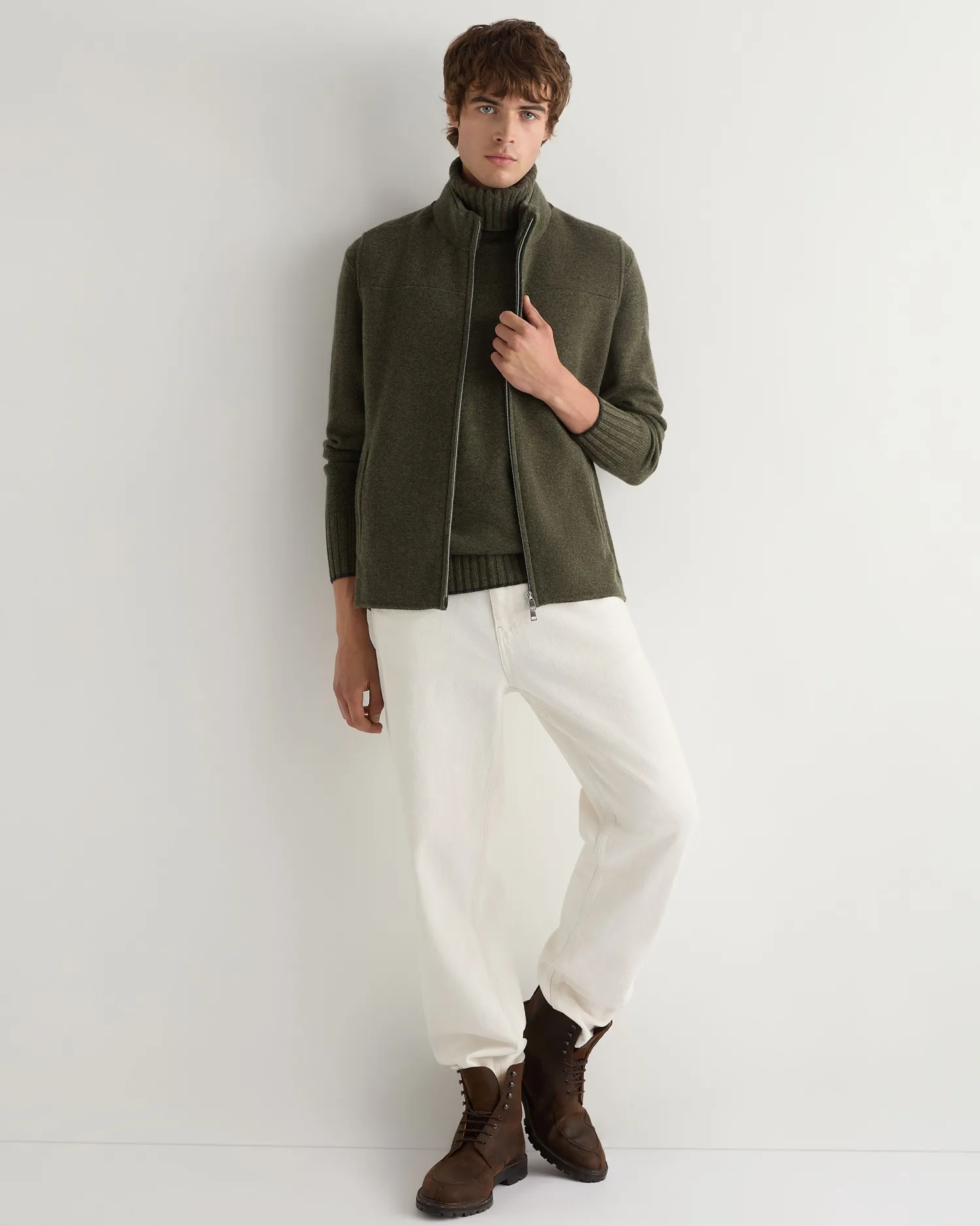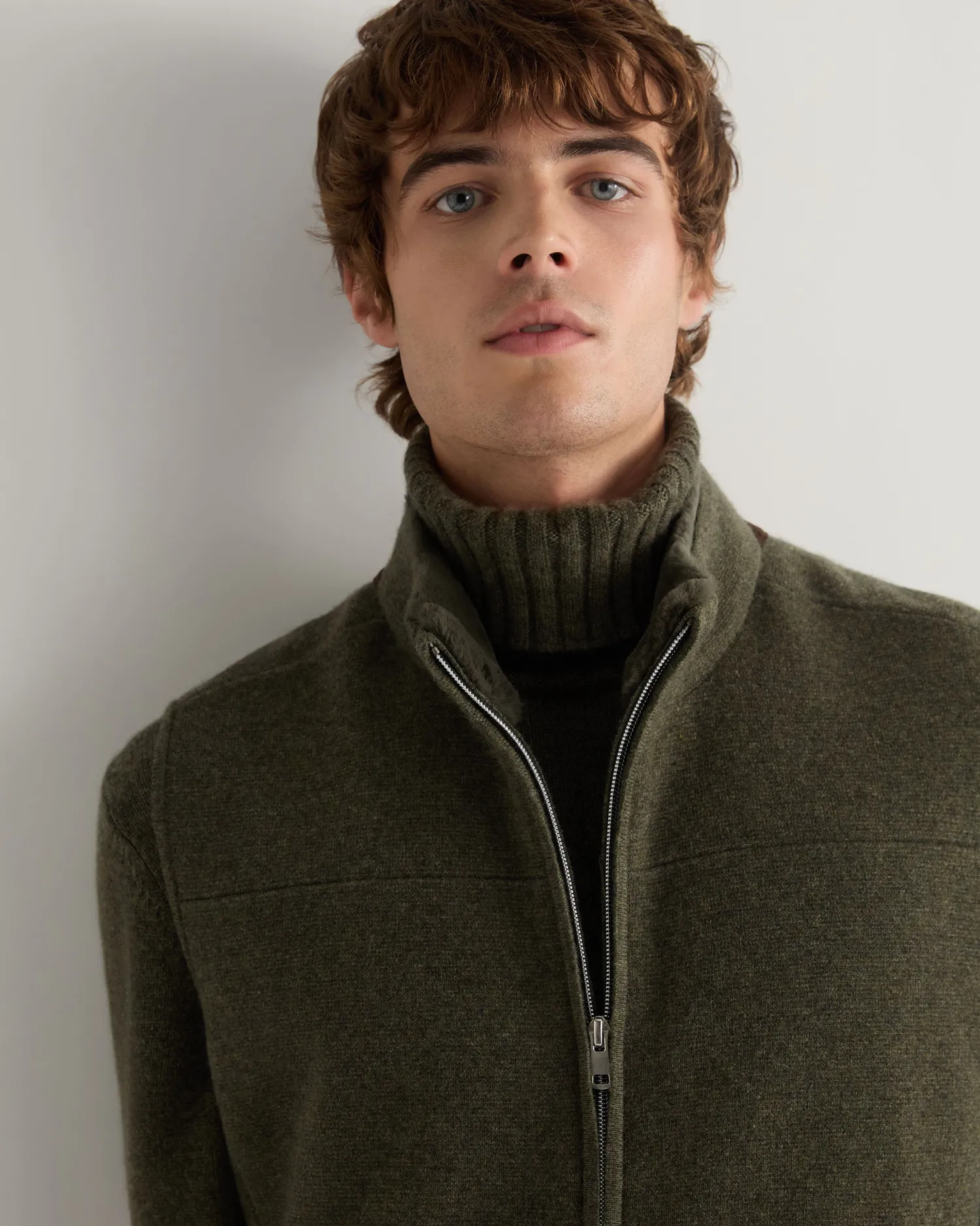 Our fabulous new Rex trim gilet, an essential piece that transforms any outfit. Made from 100% organic Mongolian cashmere and rex fur – The collar features a luxurious dark olive rex fur trim – A convenient two-way zip, allowing for versatile styling – Perfect for layering over a sweater in the cool months – Comfortable, soft, luxurious and easy to easy and style – This gilet features discreet pockets for convenience – An essential in for any wardrobe this winter – 1ply – Model is wearing size medium – Care: Dry Clean Only