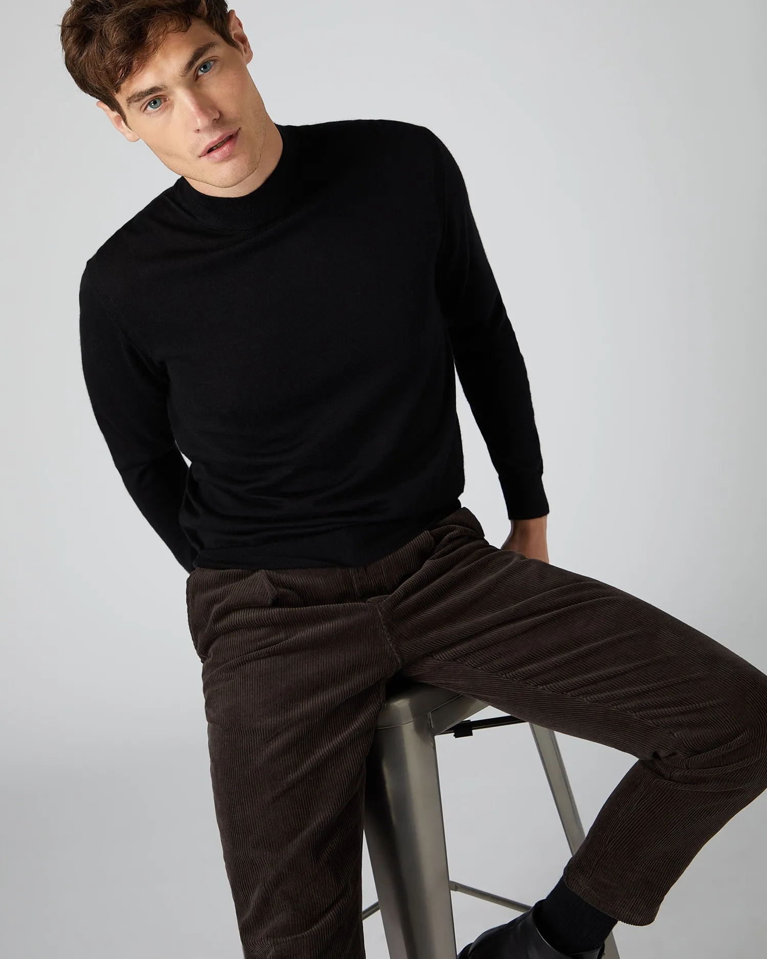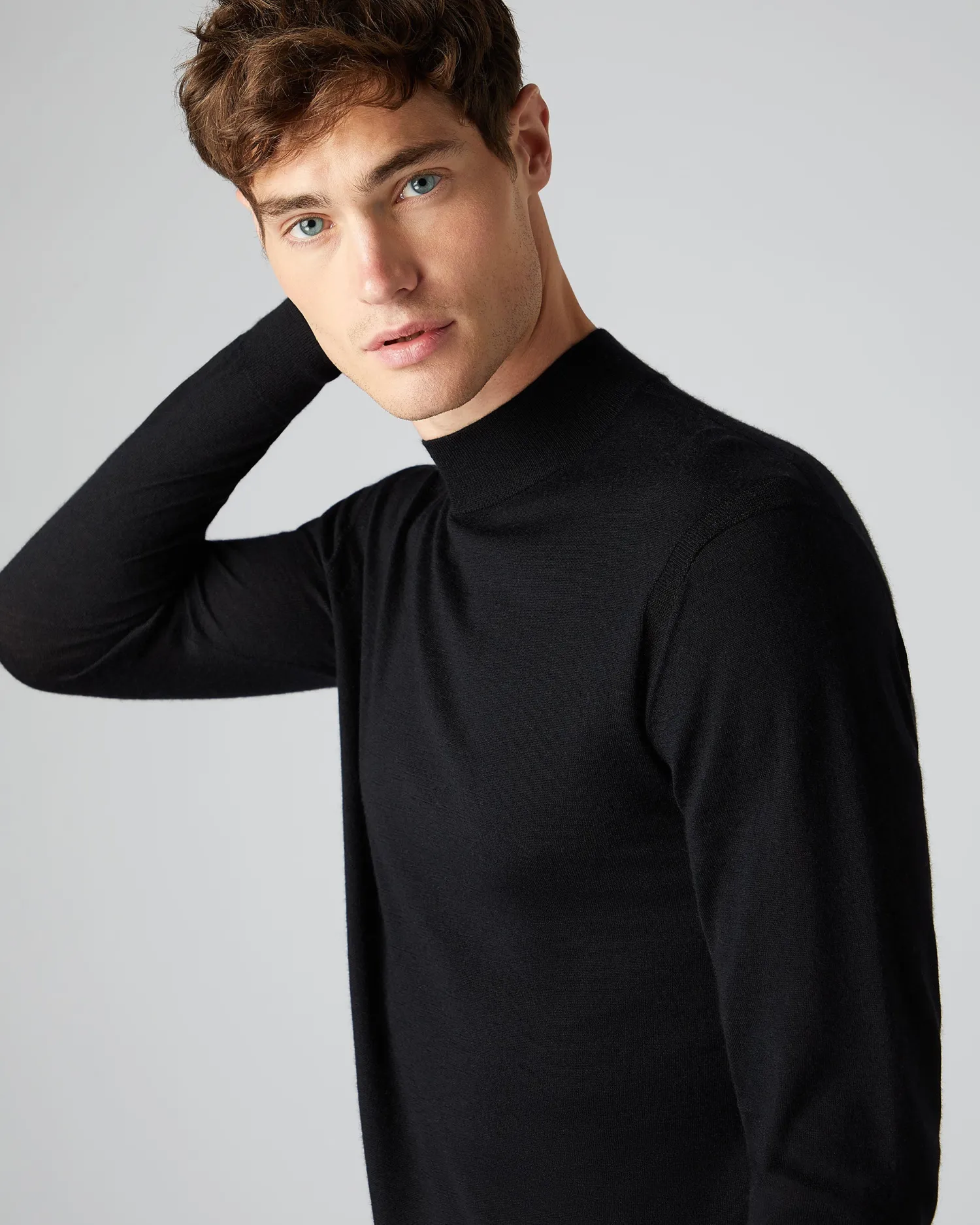 Here we see the N.Peal fine gauge mock turtle neck cashmere and silk sweater, famous for a very good reason! 70% Cashmere spun with 30% Silk – Lighter weight finish – Silk to give a super smooth feel – Popular layering piece for outdoor activities – Seen famously on a certain spy of the big screen! – Our fine gauge products have a naturally slimmer fit, if you’d like a looser fit (like our other products) or are between sizes, we suggest you size up – Model is wearing size Medium- Care: Hand Wash