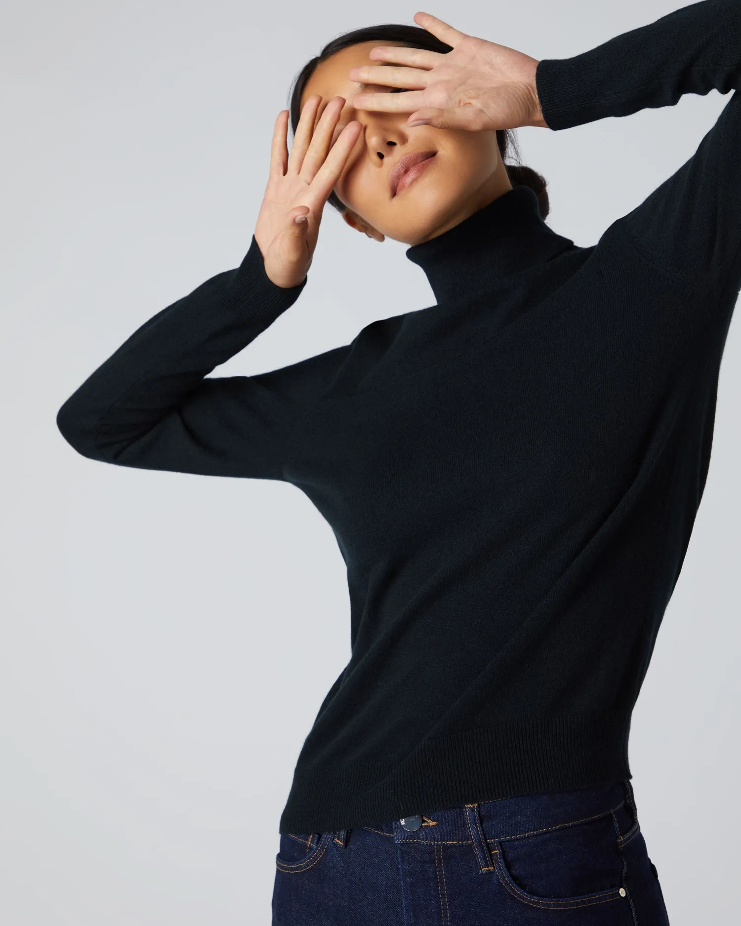 Feel the warmth and softness of our cashmere in this roll neck cashmere sweater. 100% Mongolian Organic Cashmere – True Cashmere hero – Long loved classic roll neck style – Super soft against the skin – Wide selection of colours- Model is wearing size Small- Care: Hand Wash Organic cashmere: organic dyes and detergents, free from fertilizer and pesticides, find out more herenFind our full range of Women’s Cashmere Roll Neck Jumpers here.