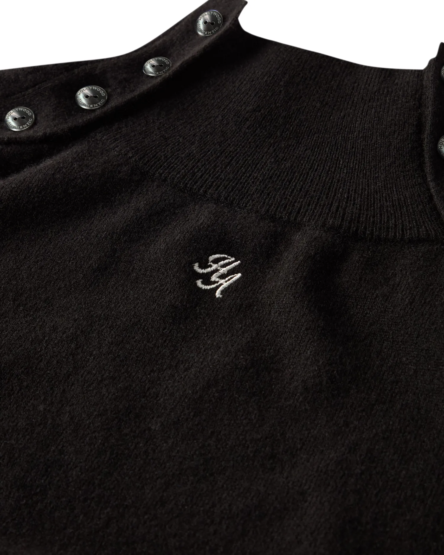 A staple of Film Noir, the Femme Fatale is a character whose beauty is matched by great power. Taking inspiration from two of cinema’s female trailblazers and N.Peal customers, Elizabeth Taylor u0026amp; Ava Gardner, this jet black play suit is crafted from 100% ultra-soft Mongolian cashmere. Made from 100% organic Mongolian cashmere – Incredibly soft against the skin- Button details at the neck – Optional matching knitted belt – Discreet ‘HA’ embroidery on rear neck- 1ply- Hand Wash