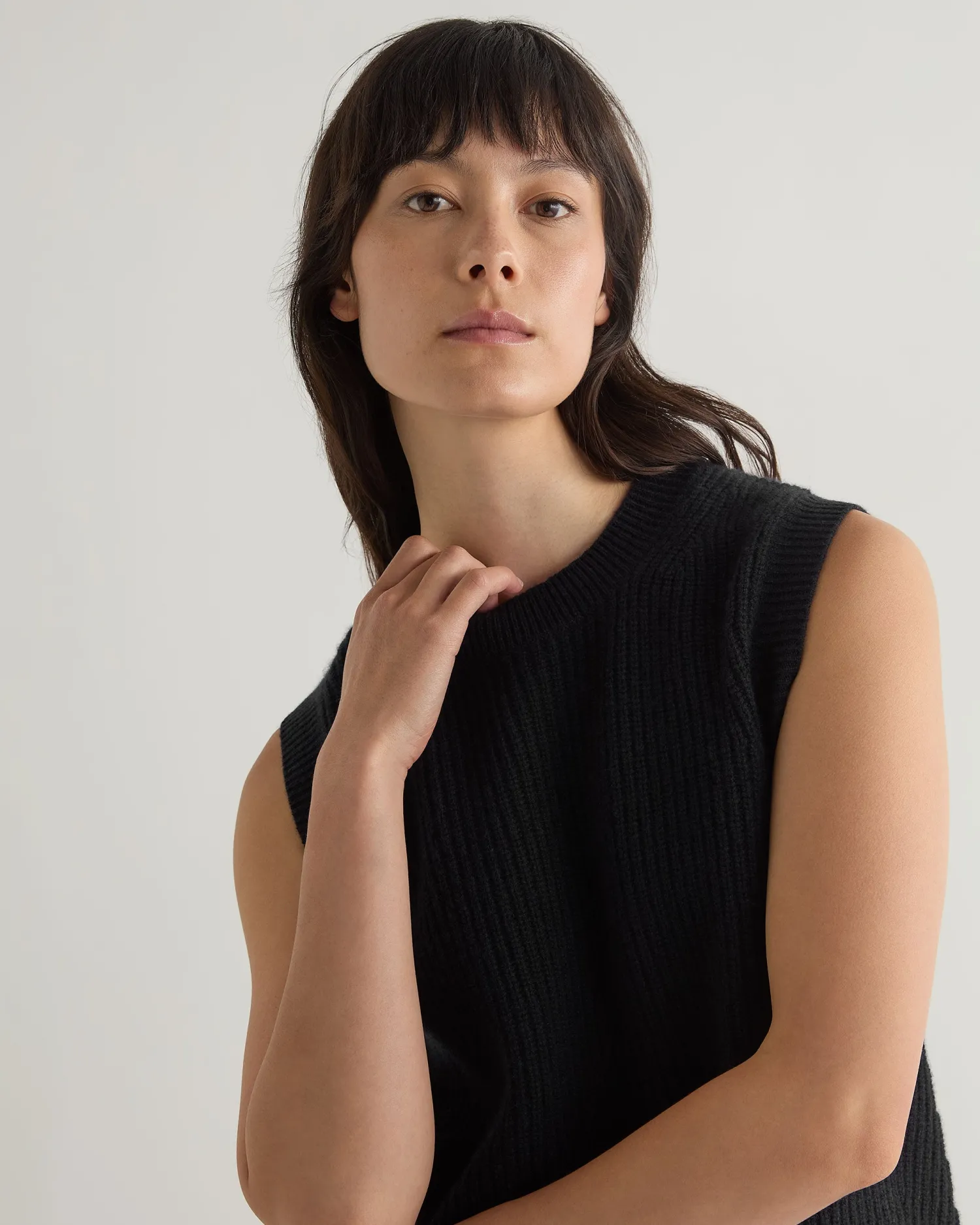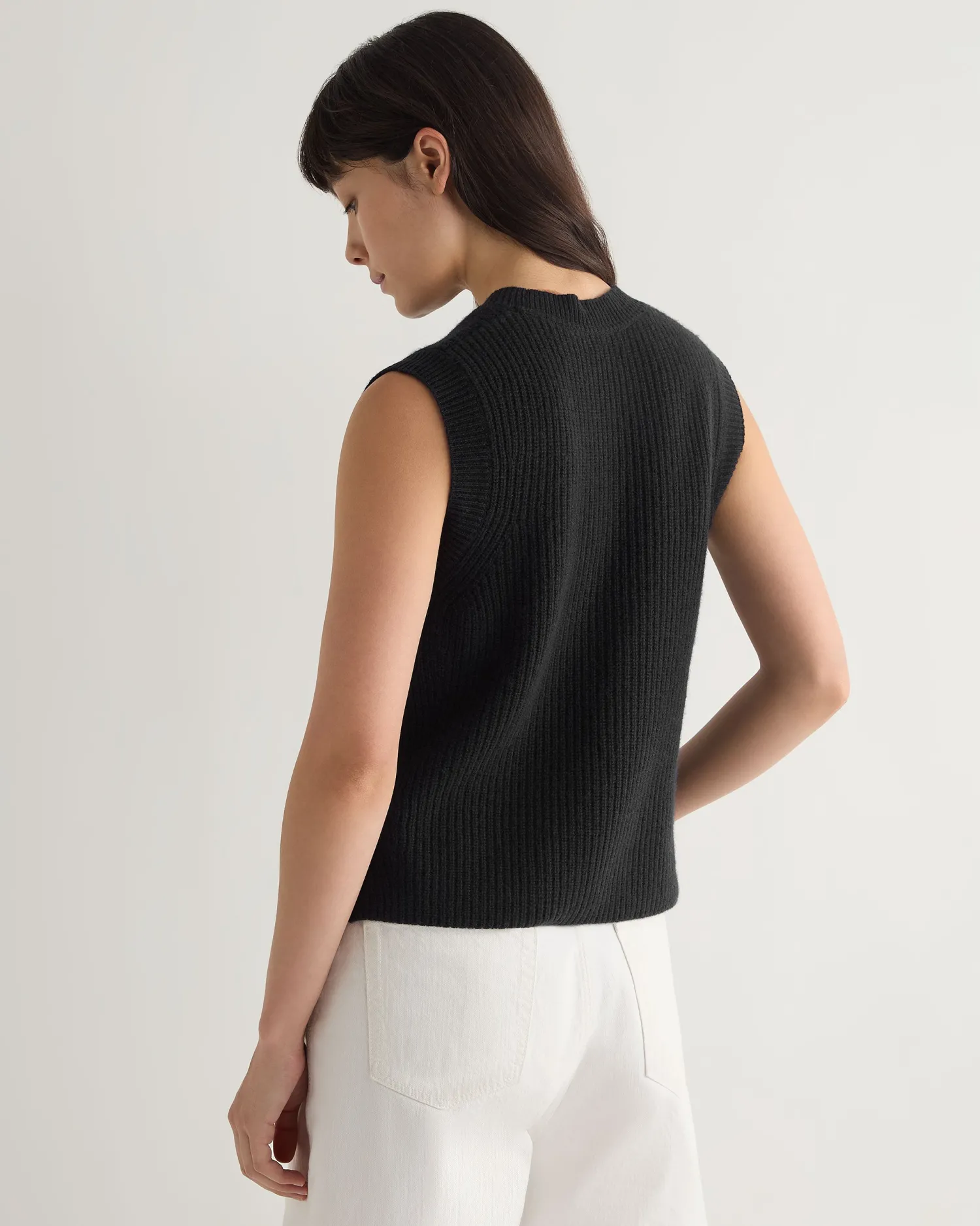 This completely new sleeveless ribbed sweater is the perfect blend of sophistication and comfort. Made from the finest cashmere, this versatile piece offers a luxurious feel against the skin while providing a sleek, contemporary look. Made from 100% Mongolian organic cashmere – Luxurious and comfortable – Popular ribbed knit design – Ideal for layering or wearing solo, suitable for various occasions – 2ply – Model is wearing size Small – Care: Hand Wash Organic cashmere: organic dyes and detergents, free from fertilizer and pesticides, find out more here