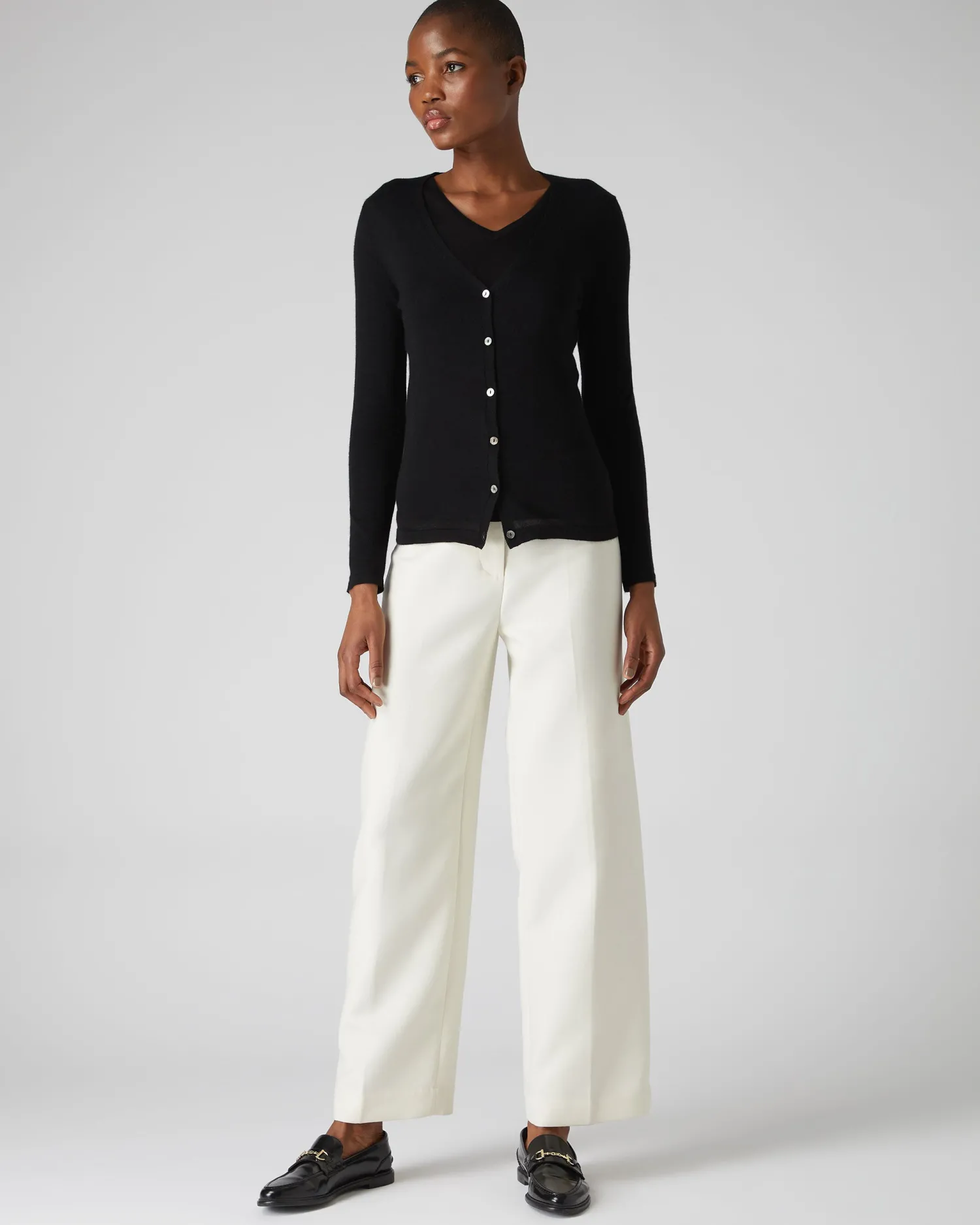 Our indulgent superfine cashmere V neck cardigan is worth a try. 100% Mongolian worsted Cashmere – Yarn spun finer to create a lightweight feel – Beautifully light and soft – Elegant v neck style – Six shell buttons to fasten – Great paired with N.Peal superfine shell top- Our superfine products have a naturally slimmer fit, if you’d like a looser fit (like our other products) or are between sizes, we suggest you size up- Model is wearing size Small- Care: Hand WashnFind our full range of Women’s Cashmere Cardigans here.