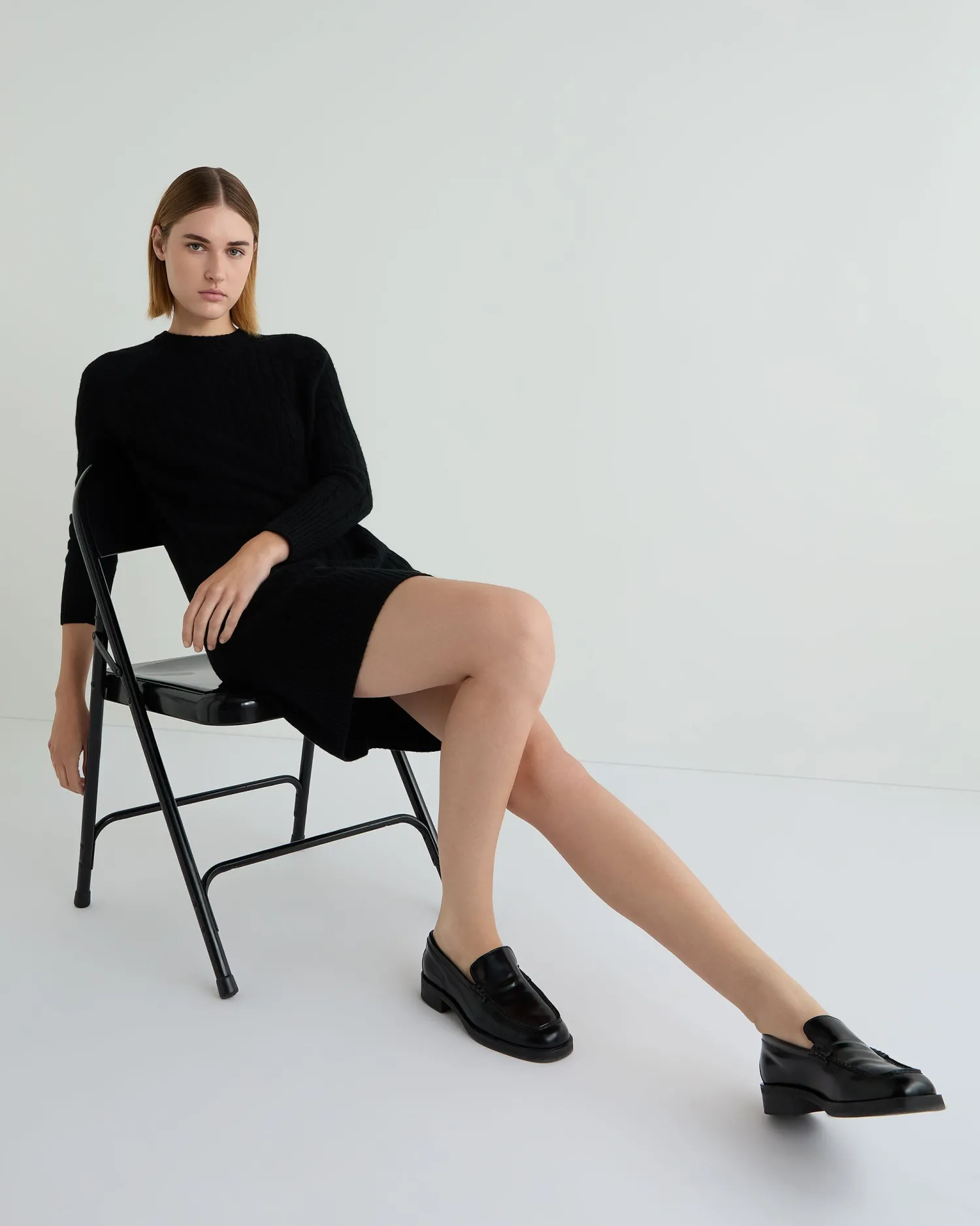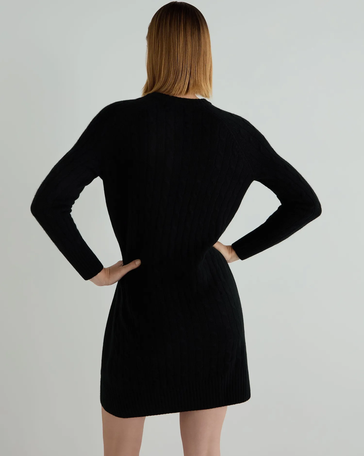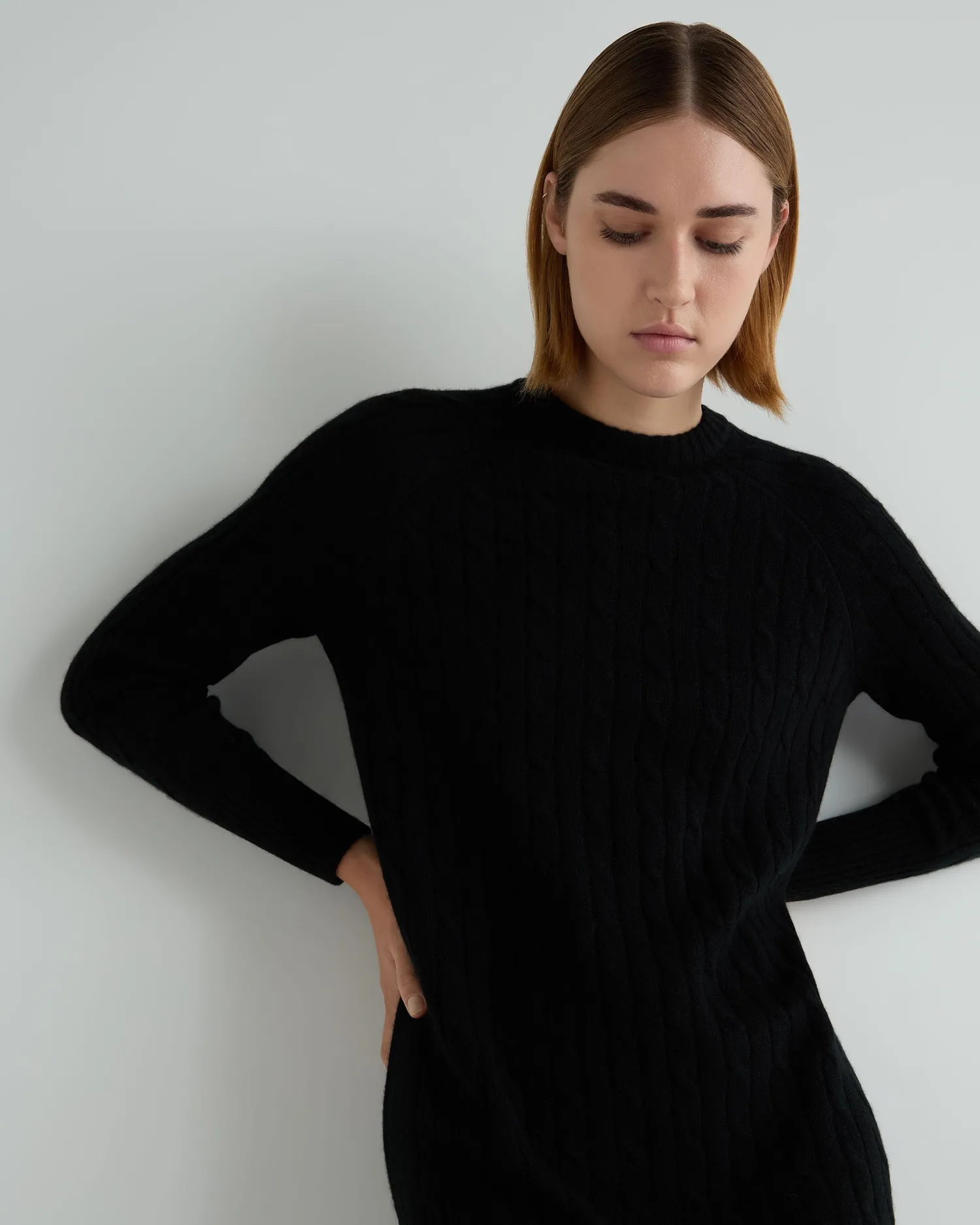 A wonderful cable inspired cashmere dress. Made from 100% Mongolian organic cashmere – Flattering crew neck cut – Elegant cable knit structure – Beautiful fluid sleeve design – Matching ribbed cuffs, hem and neckline – Raglan shoulder detail – Luxurious eye-catching cable detail – 2ply – Model is wearing size Small – Care: Hand Wash Organic cashmere: organic dyes and detergents, free from fertilizer and pesticides, find out more here