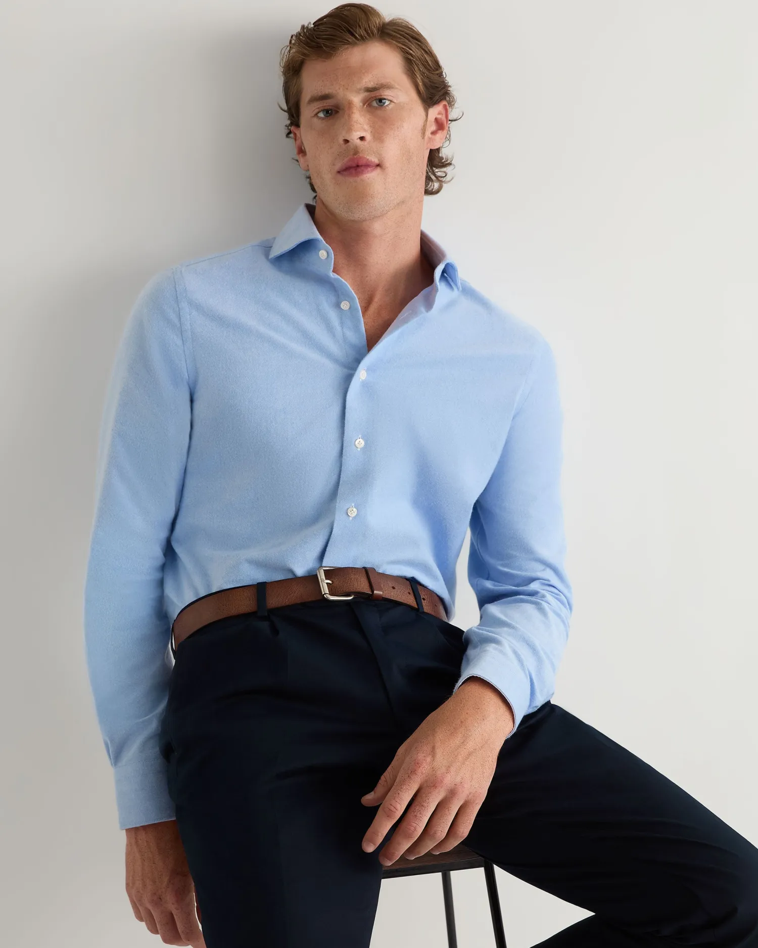 A core piece for every gents wardrobe here, a beautiful cotton shirt created with luxury in mind.- Made from 100% brushed cotton, supremely soft against the skin, a delight to wear- Delightful contrast detail on inner cuff and collar- Button cuff – Classic cutaway collar – Available in a delightful selection of colours – Perfect teamed with any N.Peal cashmere style – Model is wearing size Medium- Machine wash at 30 degrees