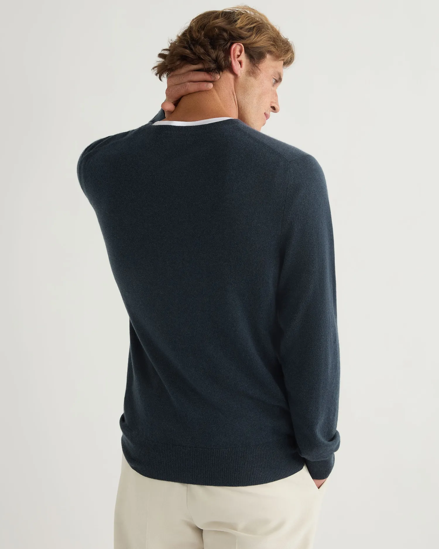 N.Peal’s best selling Oxford round neck cashmere sweater in 1ply, true luxury in cashmere. Crafted from 100% Mongolian Organic Cashmere- The most famous N.Peal sweater out there!- As worn by the character of James Bond in Skyfall- Extremely popular piece due to its 007 credentials- A luxurious sartorial staple- Perfect for all seasons- Sells out regularly, particularly in Blue Wave!- 1ply- Model is wearing size Medium- Care: Hand Wash Organic cashmere: organic dyes and detergents, free from fertilizer and pesticides, find out more heren