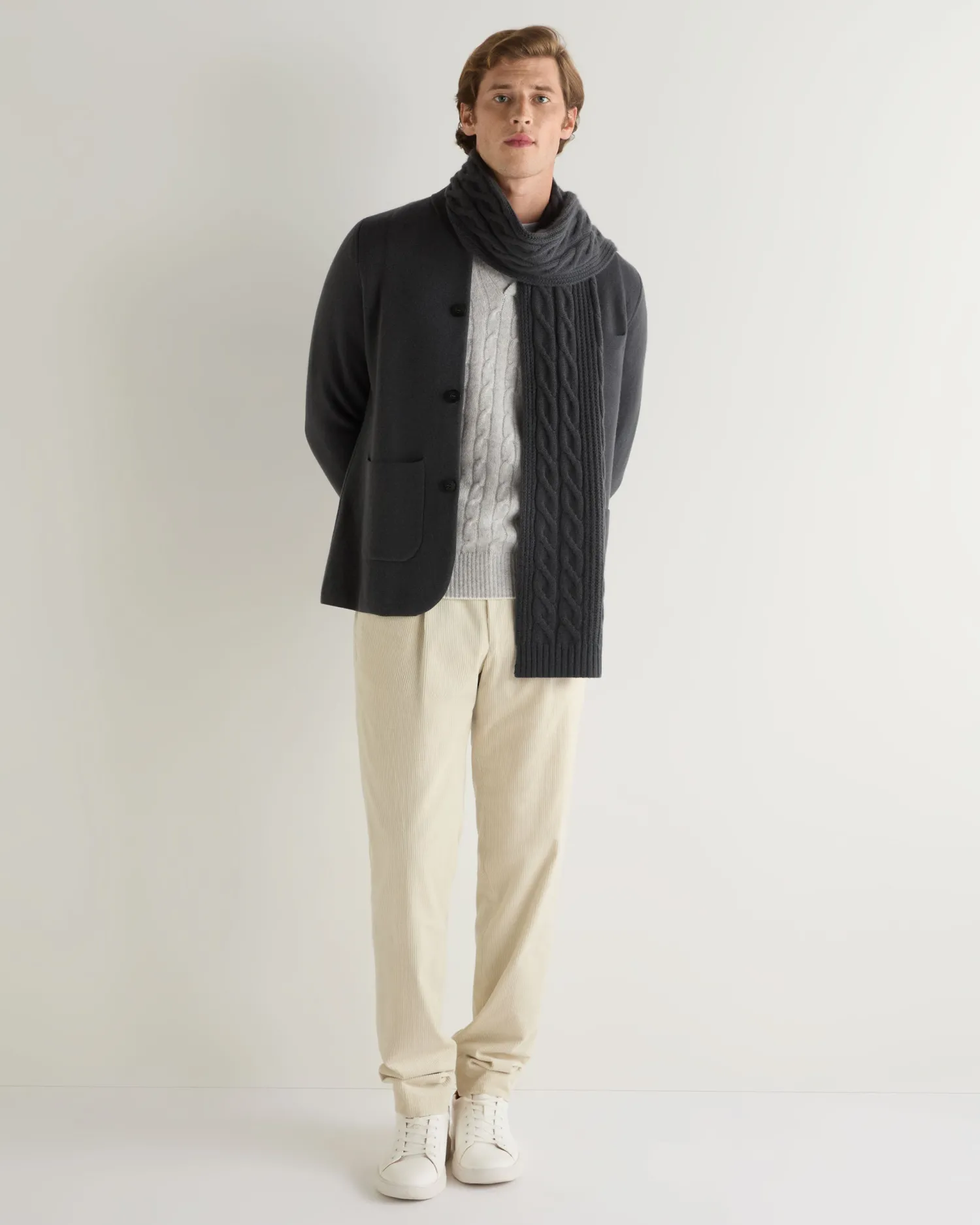 A gorgeous new scarf to match beautifully with our cable collection. Made from 100% organic Mongolian cashmere – Incredibly soft against the skin and beautiful colourations – Delightful cable and rib design – Measures a generous 182x26cm – 3ply – Care: Hand Wash Organic cashmere: organic dyes and detergents, free from fertilizer and pesticides, find out more here
