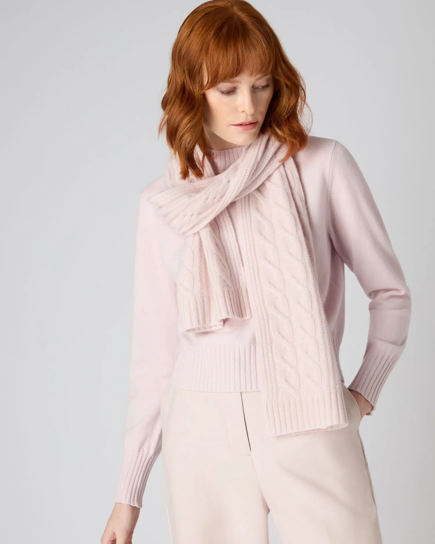 A gorgeous new scarf to match beautifully with our cable collection. Made from 100% organic Mongolian cashmere – Incredibly soft against the skin and beautiful colourations – Delightful cable and rib design – Measures a generous 182x26cm – Care: Hand Wash Organic cashmere: organic dyes and detergents, free from fertilizer and pesticides, find out more here