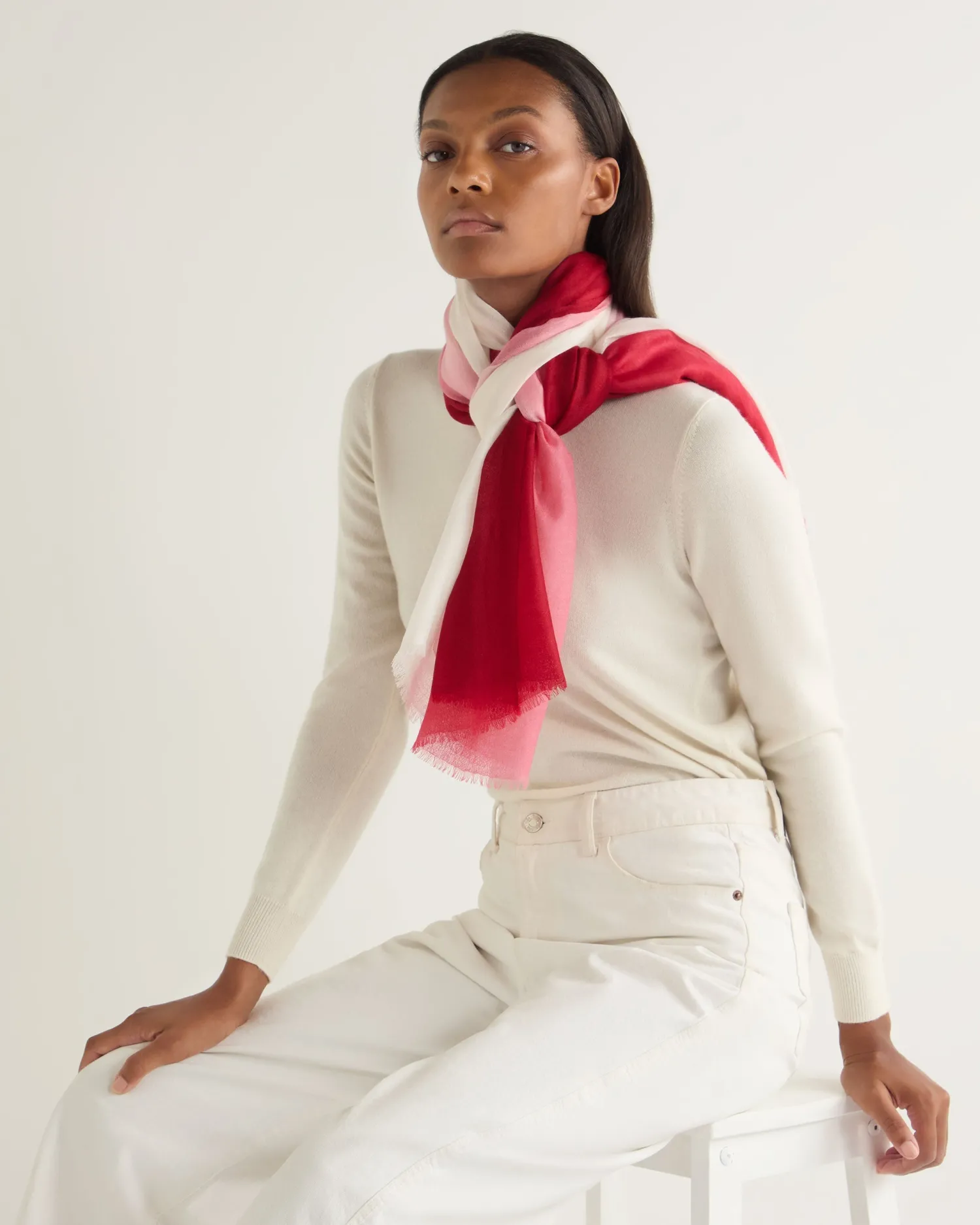 A tantalisingly attractive dip dye cashmere scarf from N.Peal. n Made from 100% Mongolian cashmere A wonderful addition to any wardrobe Exquisitely soft against the skin Created in truly beautiful shades to compliment any outfit Measures 200x100cm Truly beautiful artisan piece Care: Dry Clean Only