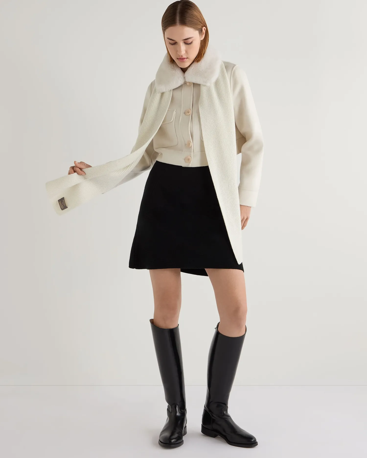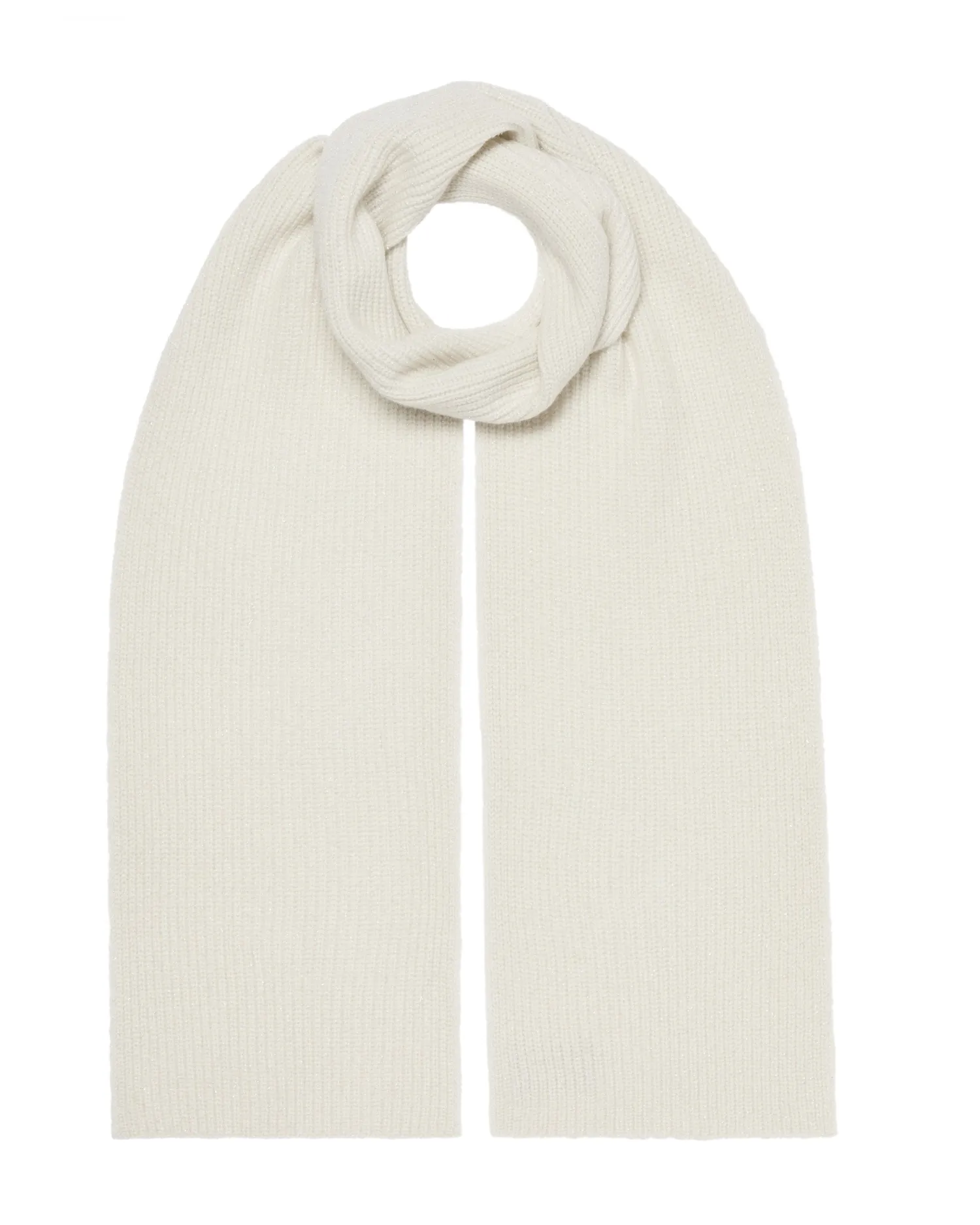 This amazing cashmere ribbed scarf looks the part with added Lurex and is super warm and cosy.n Made from 92% Mongolian cashmere and 8% Lurex Knitted in an attractive ribbed pattern Measures 185x20cm Perfect addition to the weekend wardrobe Team with our ribbed gloves and hats Would make a wonderful gift 3ply Care: Hand Wash