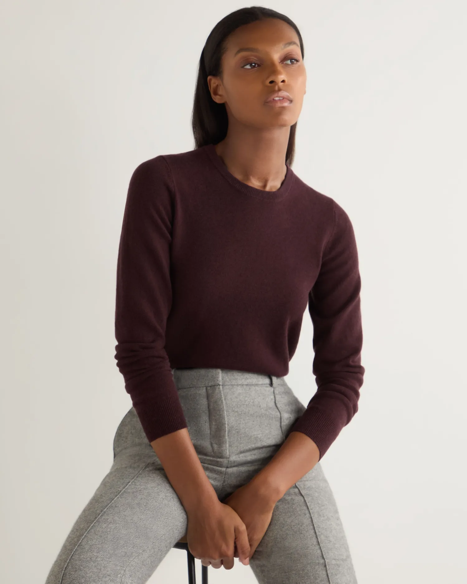 Our classic cashmere round neck sweater available in lovely shades. 100% Mongolian organic cashmere – Elegant round neck…