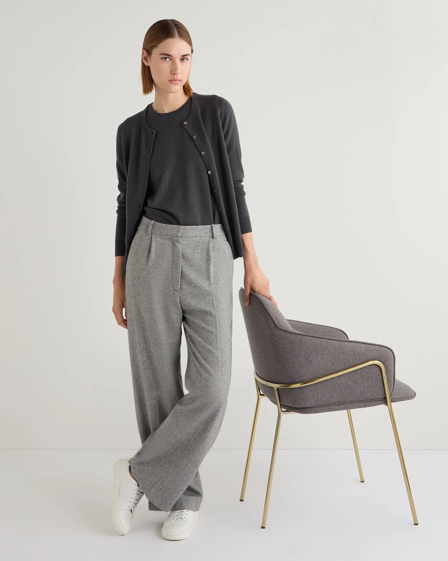 A fabulous piece to dress up or down – the cashmere round neck T-shirt. 100% Mongolian organic cashmere – Flattering round neck style – Short sleeves – Perfect layering piece – Neat matching trim finish – 1ply – Model is wearing size Small – Care: Hand Wash Organic cashmere: organic dyes and detergents, free from fertilizer and pesticides, find out more here