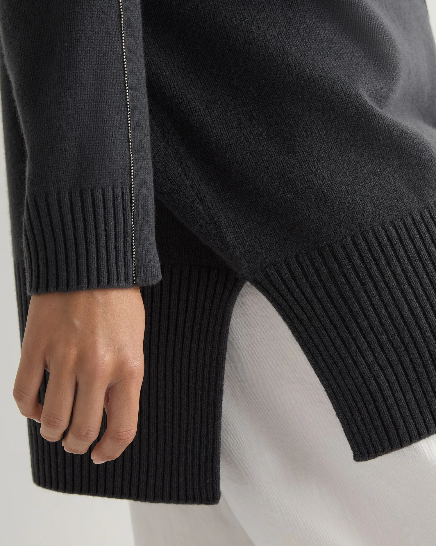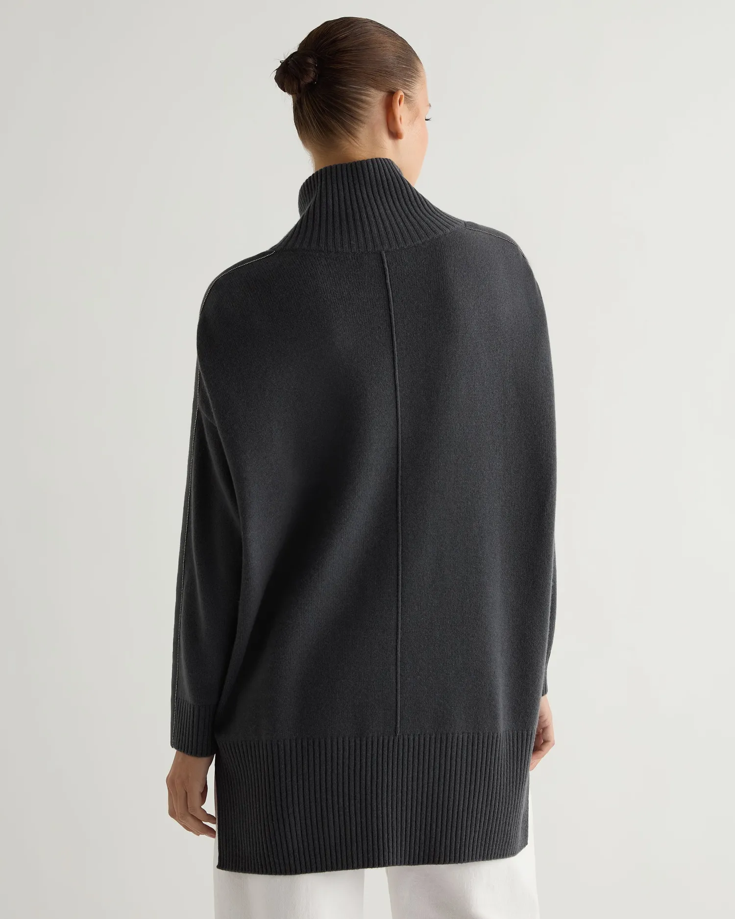 Surely the most luxurious new style for this coming season. Made form 100% organic Mongolian cashmere – Longer tunic-style design, perfectly warm and comfortable – Super comfortable mock neck design, elegant and flattering – Matching rib on hem, cuffs and neck – Side slits and dropped shoulders – Seam design detail running the length of the front and rear – 2ply – Model is wearing size Small – Care: Hand Wash Organic cashmere: organic dyes and detergents, free from fertilizer and pesticides, find out more here
