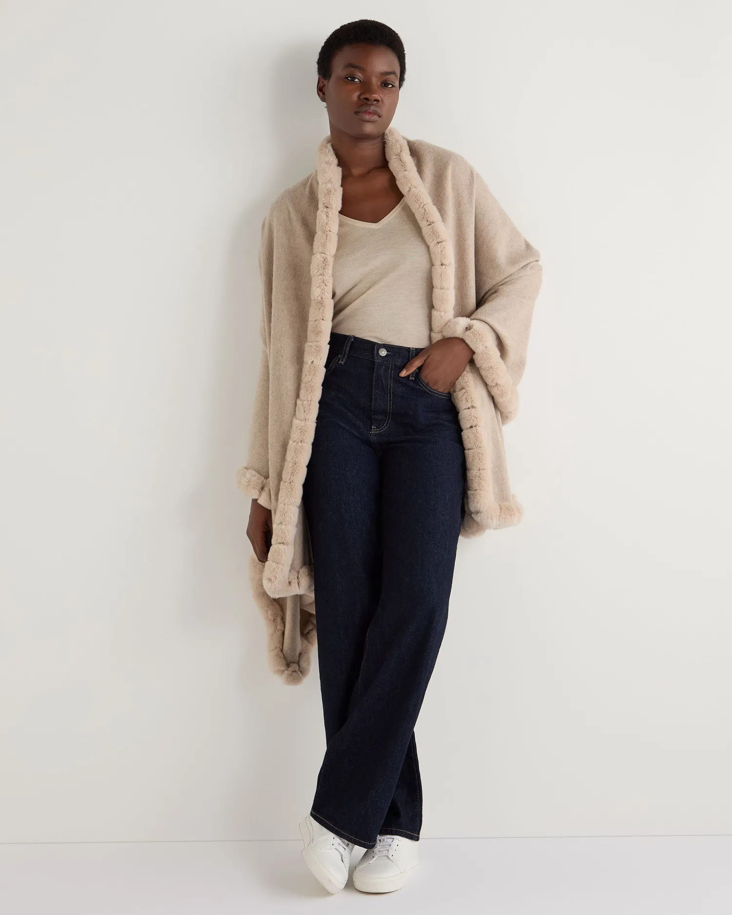 Wrap yourself in the sheer luxury of a trim woven shawl. Made from 100% Mongolian cashmere with Rex fur trim – Generously sized at 200x75cm – Sand brown fur trim around all edges – Can be worn casually with jeans or dressed up – Would make a fabulous gift – Care: Dry Clean Only