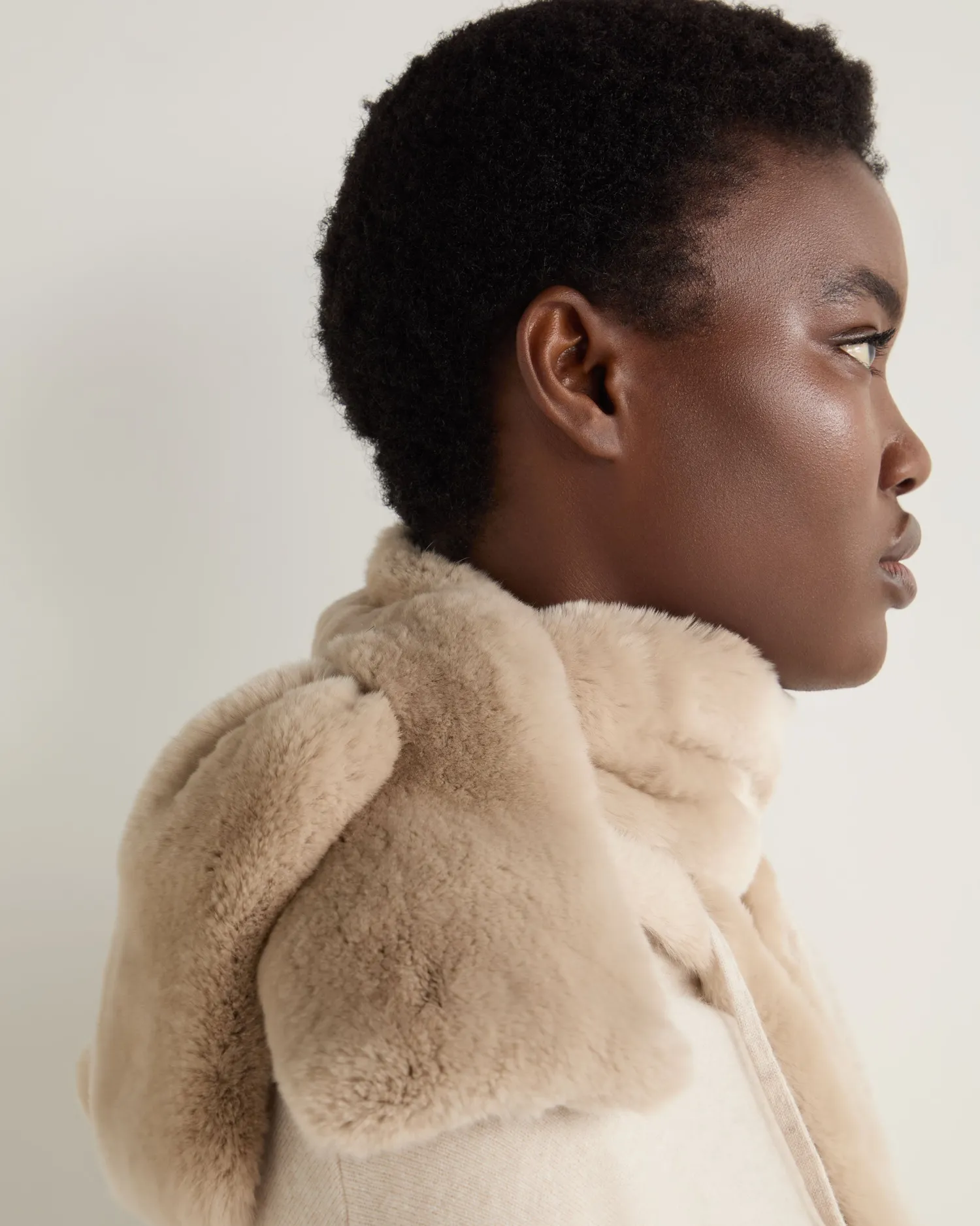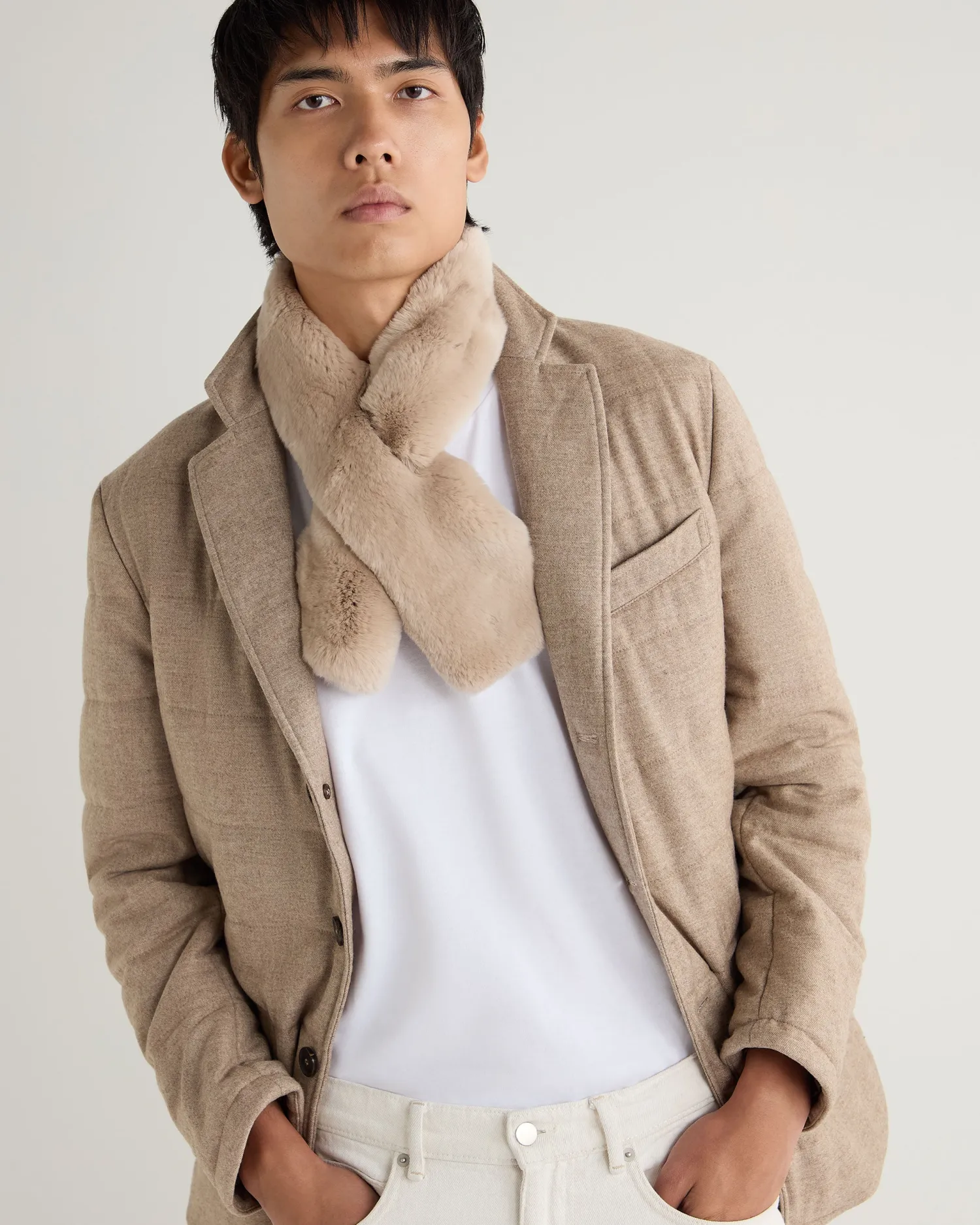 A firm favourite amongst the N.Peal audience – the Rex fur neck warmer. Made from supersoft sand brown Rex fur with a 100% Mongolian cashmere reverse in a ribbed stitch – Welcome addition to any wardrobe – Available in a lovely colour selection – Hidden slit to wear the neck warmer in a crossover style – Cosy, comfortable and warm – 1ply – Care: Dry Clean Only
