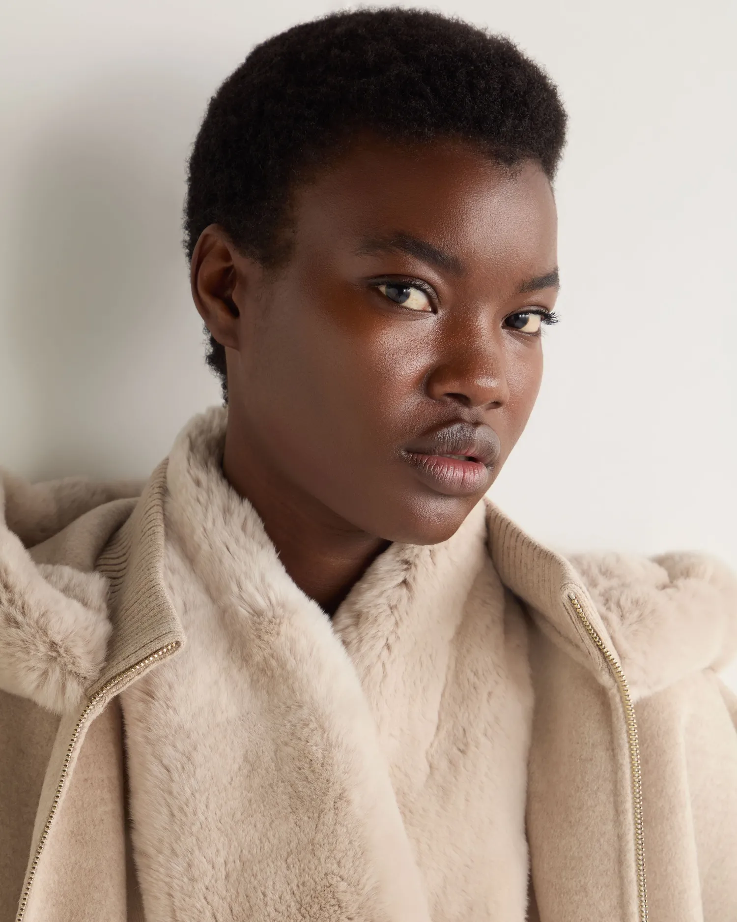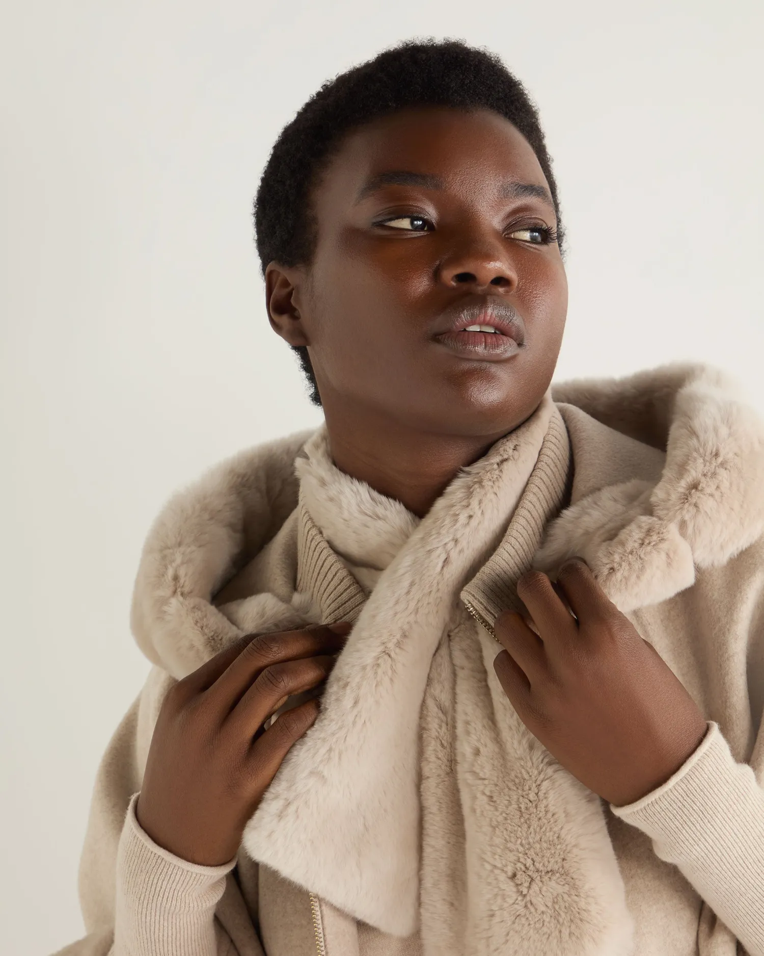 A firm favourite amongst the N.Peal audience – the Rex fur neck warmer. Made from supersoft snow grey Rex fur with a 100% Mongolian cashmere reverse in a ribbed stitch – Welcome addition to any wardrobe – Available in a lovely colour selection – Hidden slit to wear the neck warmer in a crossover style – Cosy, comfortable and warm – 1ply – Care: Dry Clean Only