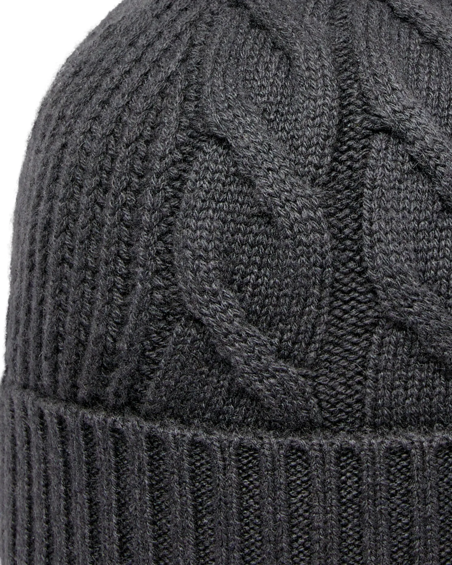 A lovely new hat combining a beautiful cable pattern with our popular rib stitch. – Made from 100% organic Mongolian cashmere – Incredibly soft against the skin and comfortable to wear – Part cable, part ribbed with a matching ribbed turn up hem – Coordinates perfectly with matching items – 3ply – Care: Hand Wash Organic cashmere: organic dyes and detergents, free from fertilizer and pesticides, find out more here