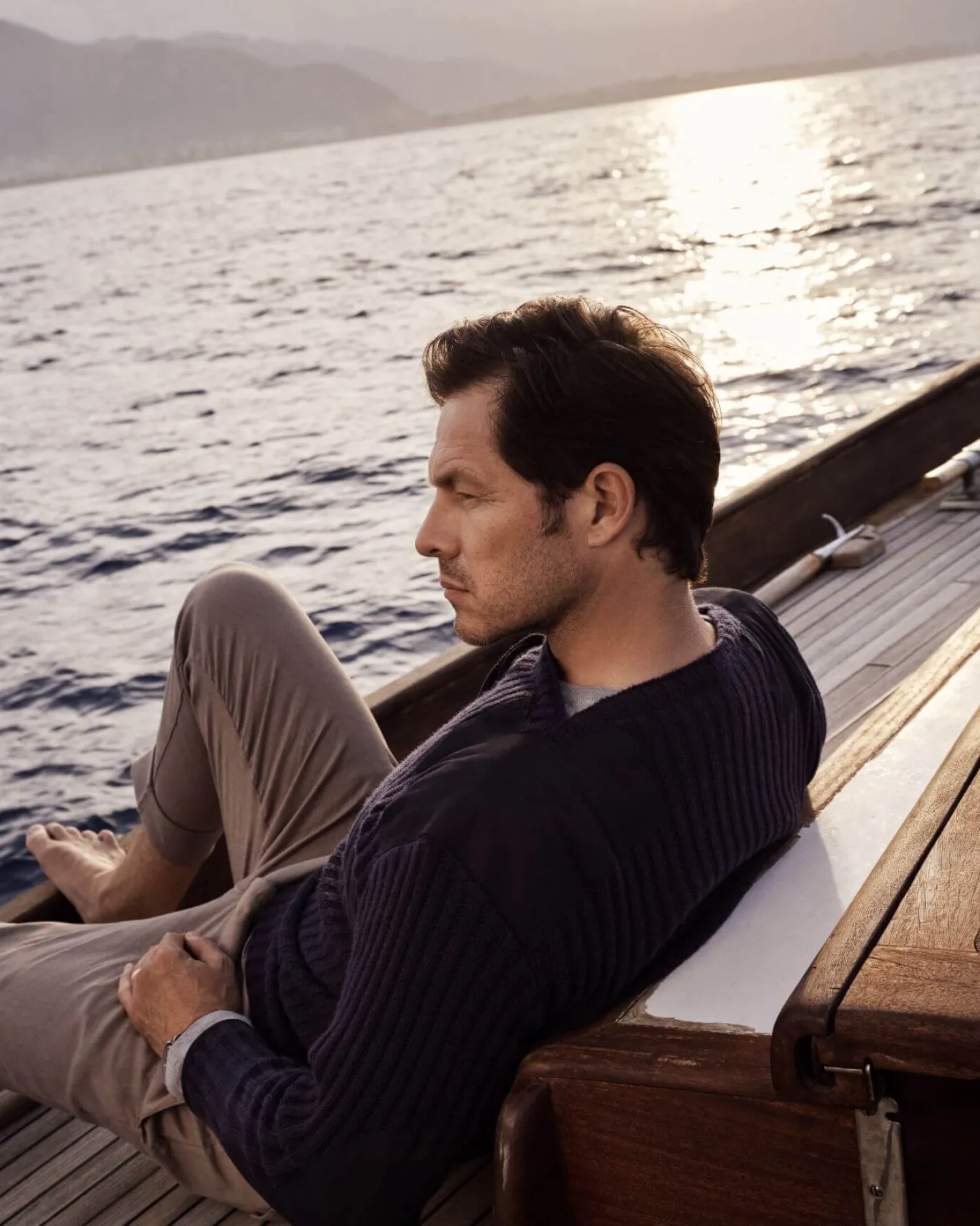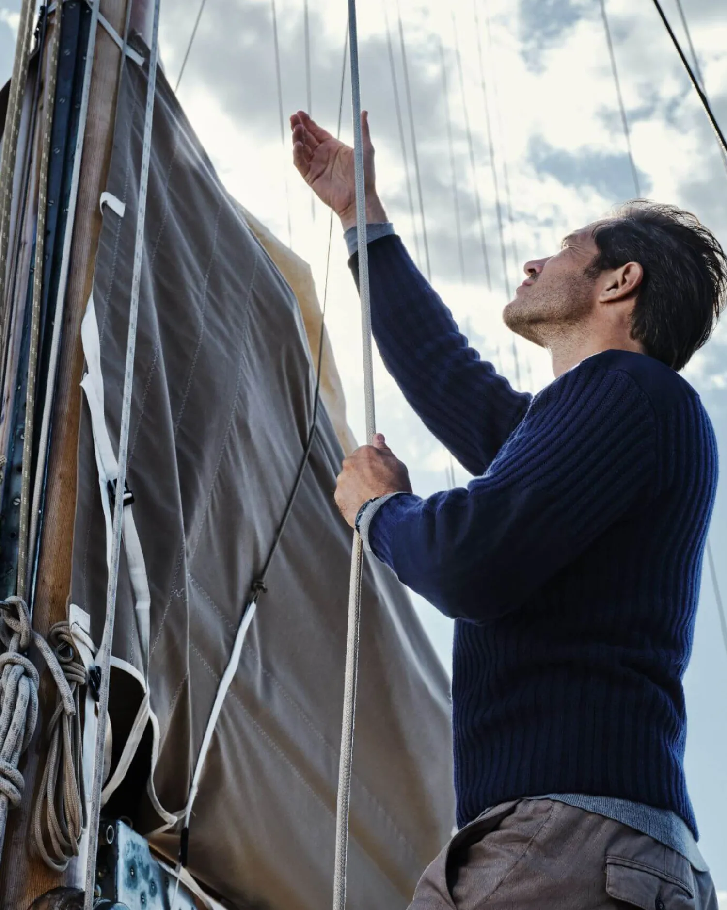 The unique N.Peal Navy Ribbed Army Sweater designed exclusively for James Bond’s latest on-screen adventure, NO TIME TO DIE (2021). – A blend of 90% superfine Merino Wool and 10% Cashmere- Canvas patches on the shoulders, elbows and cuffs- Draw cord detail with metal trims at the neckline- Unisex ribbed sweater- This unisex sweater is in men’s sizing. Ladies, drop two sizes for a slim fit, check our size guide for more info.- The N.Peal Navy Ribbed Army Sweater also marries perfectly with the N.Peal Combat Trousers as seen in the film.- Male model is wearing size Large and female model is wearing size Small- Care: Hand WashnThe sweater’s military flavour is maintained with the ribbing and the canvas patches on the shoulders, elbows and cuffs, while the neck is consistent with maritime clothing designed to reflect Bond’s close association with the Royal Navy. N Peal worked closely with Suttirat Anne Larlarb, the NO TIME TO DIE costume designer to interpret her vision and create this timeless silhouette.nNO TIME TO DIE and related James Bond Indicia © 1962-2024 Danjaq, LLC and Metro-Goldwyn-Mayer Studios Inc. NO TIME TO DIE and related James Bond Trademarks and trademarks of Danjaq, LLC. All Rights Reserved.