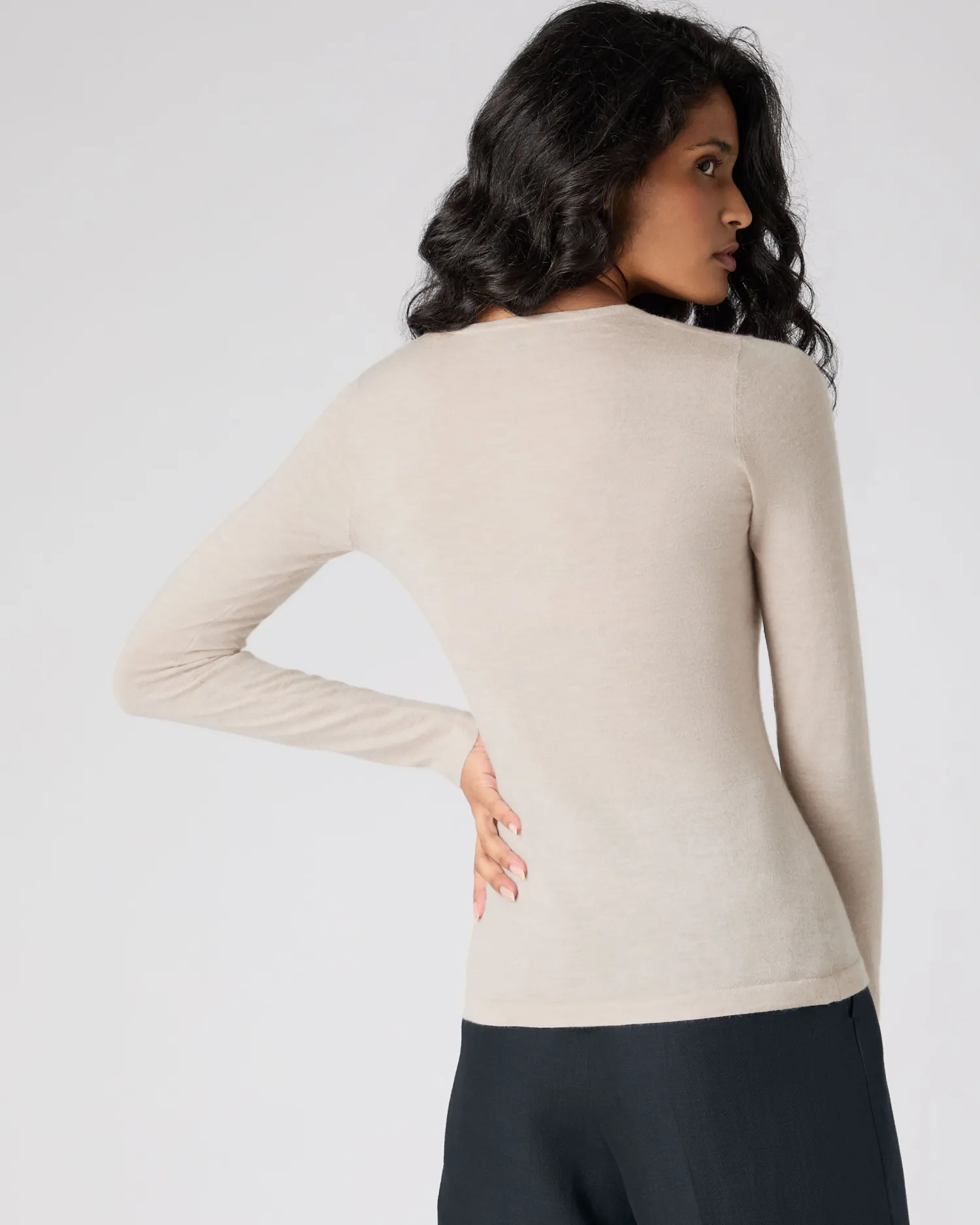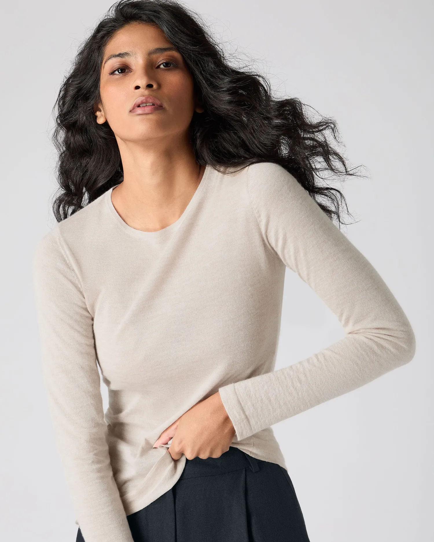 Our superfine is very popular, here we see the long sleeve, round neck cashmere top. 100% Mongolian worsted Cashmere – Yarn spun finer to create a lightweight feel – Beautifully light and soft – Gentle round neck style – Range of colours available – Our superfine products have a naturally slimmer fit, if you’d like a looser fit (like our other products) or are between sizes, we suggest you size up – Model is wearing size Small – Care: Hand Wash