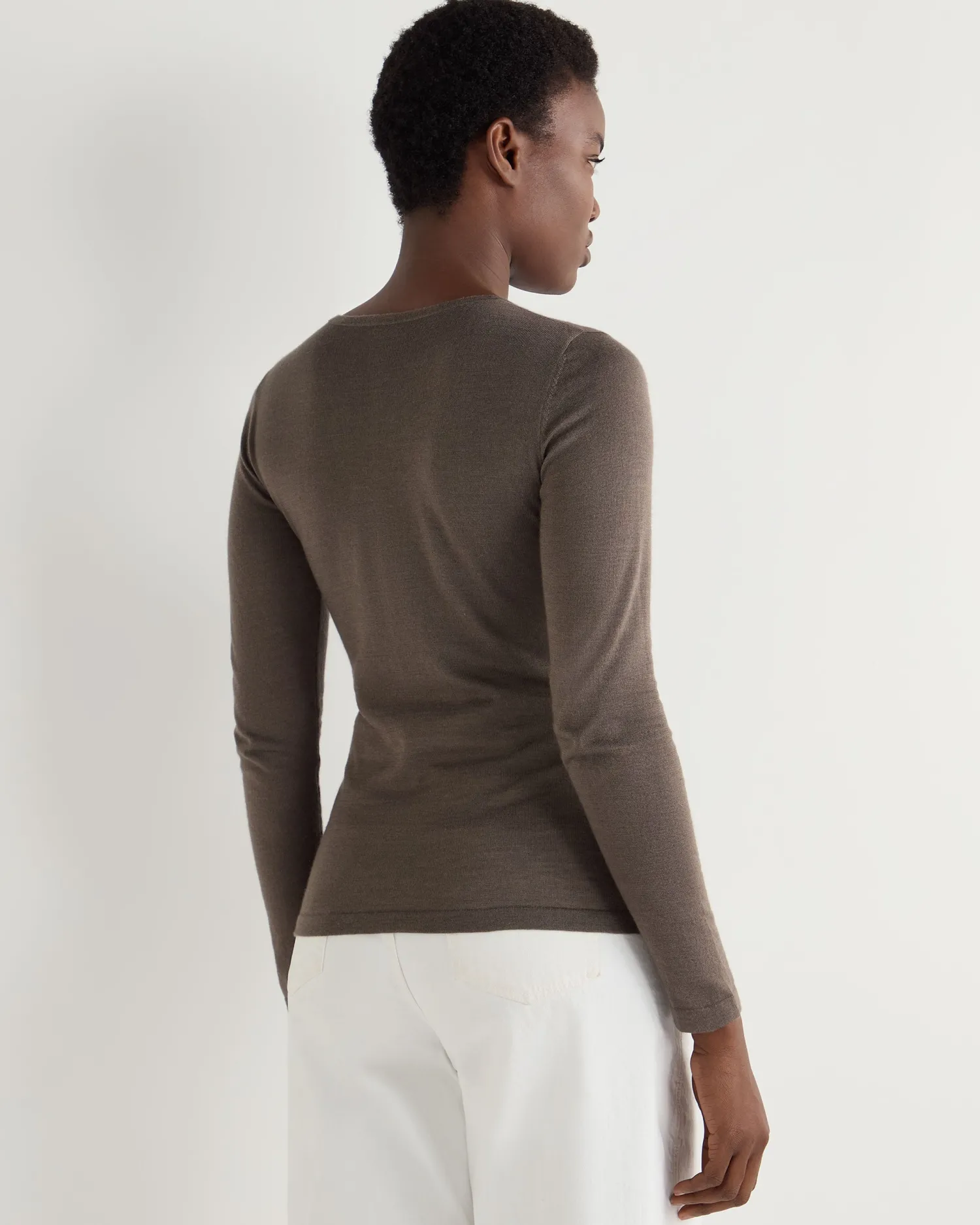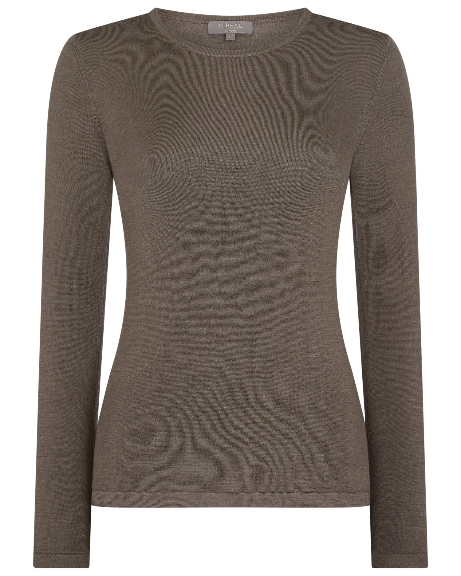 Our superfine is very popular, here we see the long sleeve, round neck cashmere top. 100% Mongolian worsted Cashmere- Yarn spun finer to create a lightweight feel- Beautifully light and soft- Gentle round neck style- Range of colours available- 1Ply- Our superfine products have a naturally slimmer fit, if you’d like a looser fit (like our other products) or are between sizes, we suggest you size up- Model is wearing size Small- Care: Hand Washn