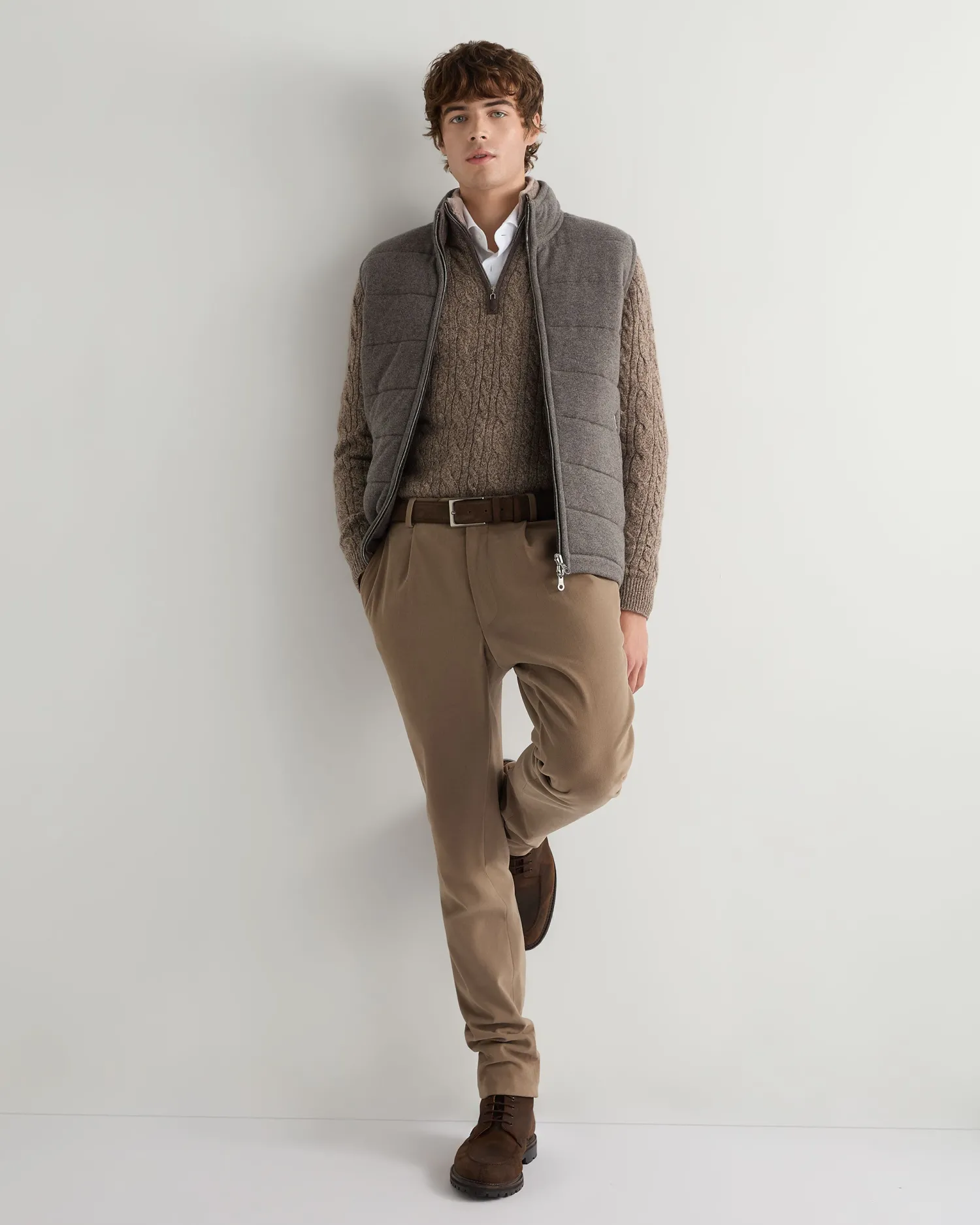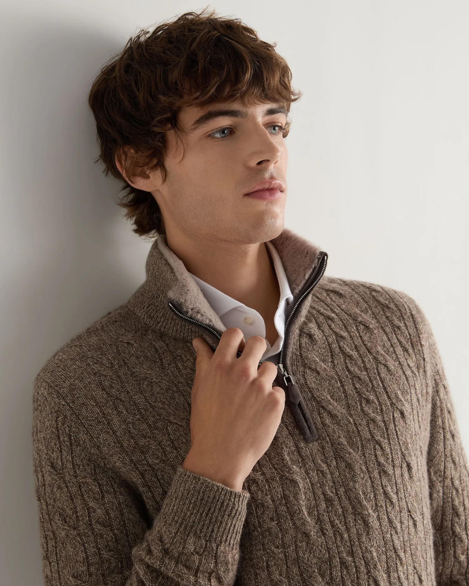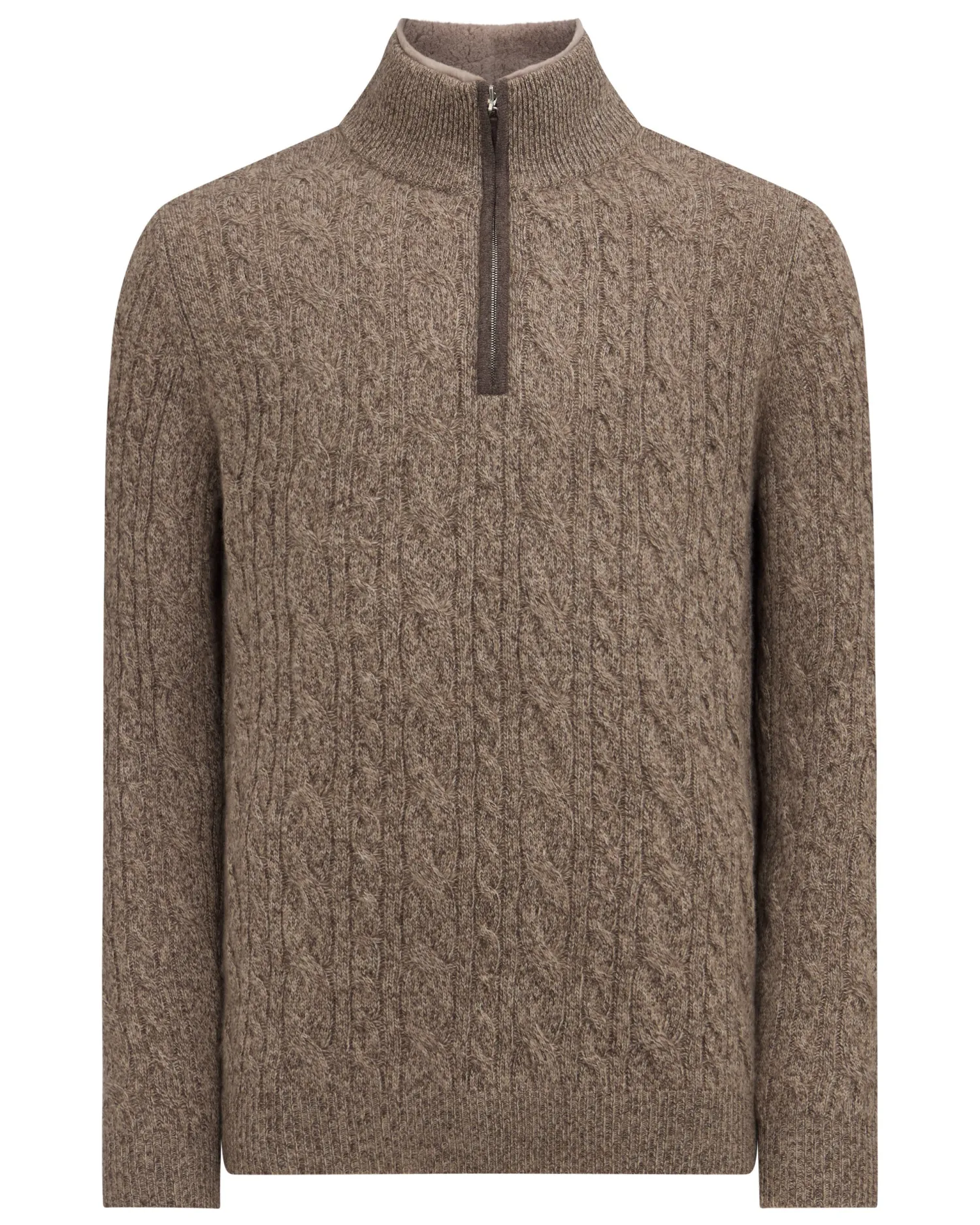 Our popular half zip style, with extra luxury added! Made from 100% Mongolian cashmere with a toast brown rex fur inner collar – Super popular half zip style – Zip fastening with our distinctive leather toggle – Mixed cable knit pattern front, back and both arms – Smart matching rib knit collar, cuffs and hem – Fabulous worn over a T-shirt , a crisp white shirt or supersoft alone against the skin – 2ply – Model is wearing size Medium – Care: Hand Wash