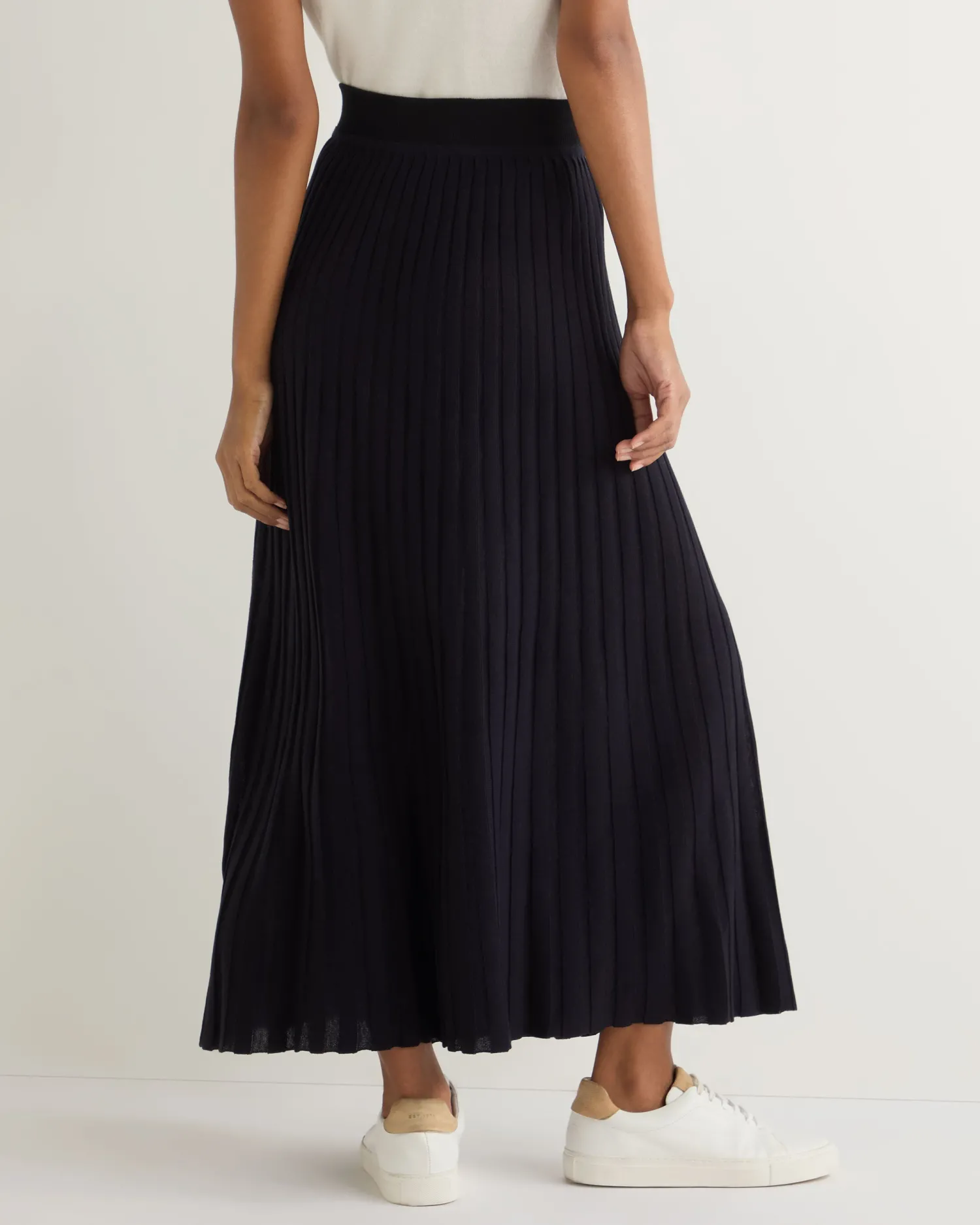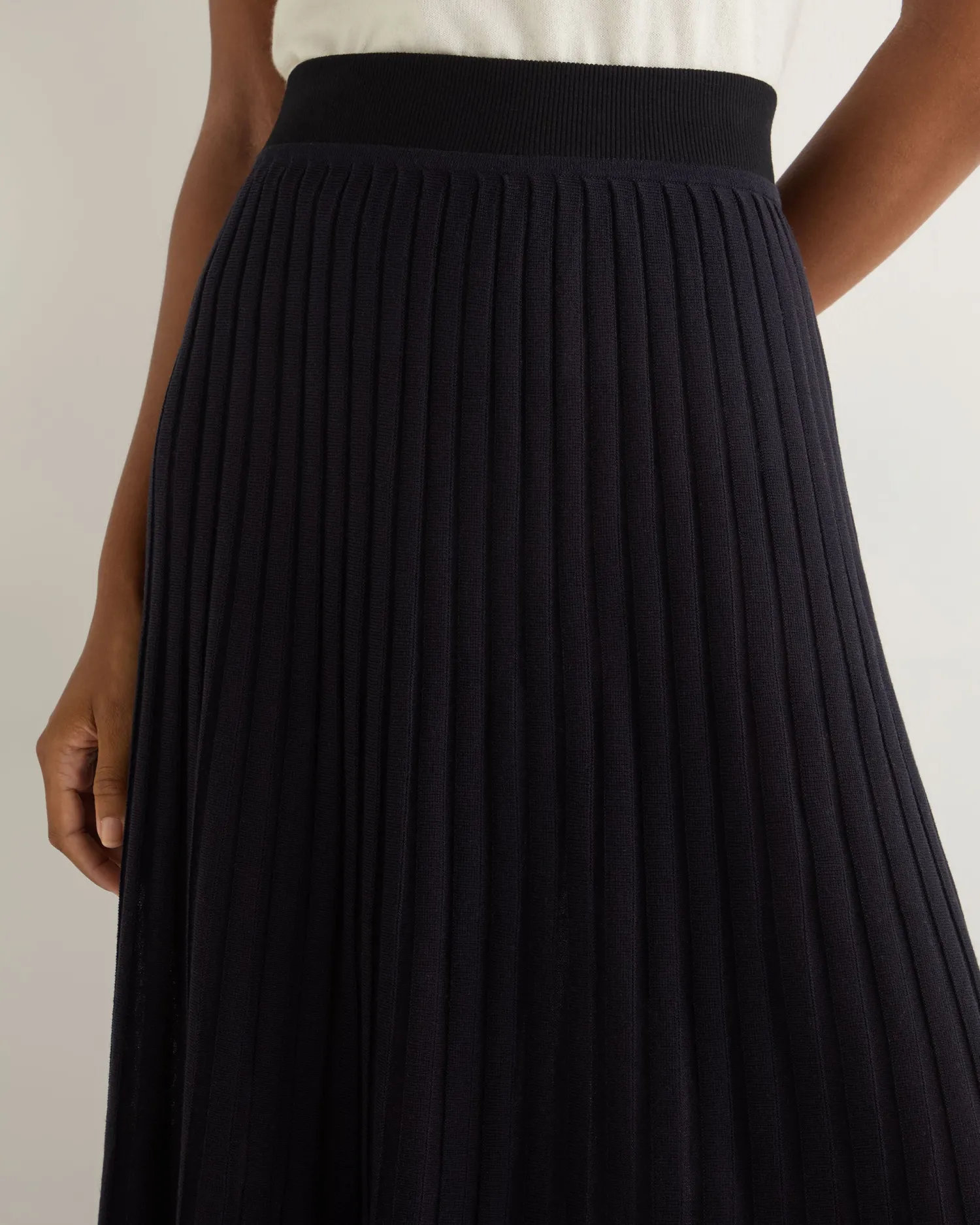 A masterpiece of elegance and sophistication – introducing our new superfine pleated skirt.n Made from 85% silk and 15% organic Mongolian cashmere This skirt is lightweight and drapes gracefully Beautifully creating a sleek silhouette that flatters every figure Effortlessly transitions from day to night Pair with a blouse or a cashmere sweater The soft, luxurious texture ensures maximum comfort 1ply Model is wearing size Small Care: Hand Wash