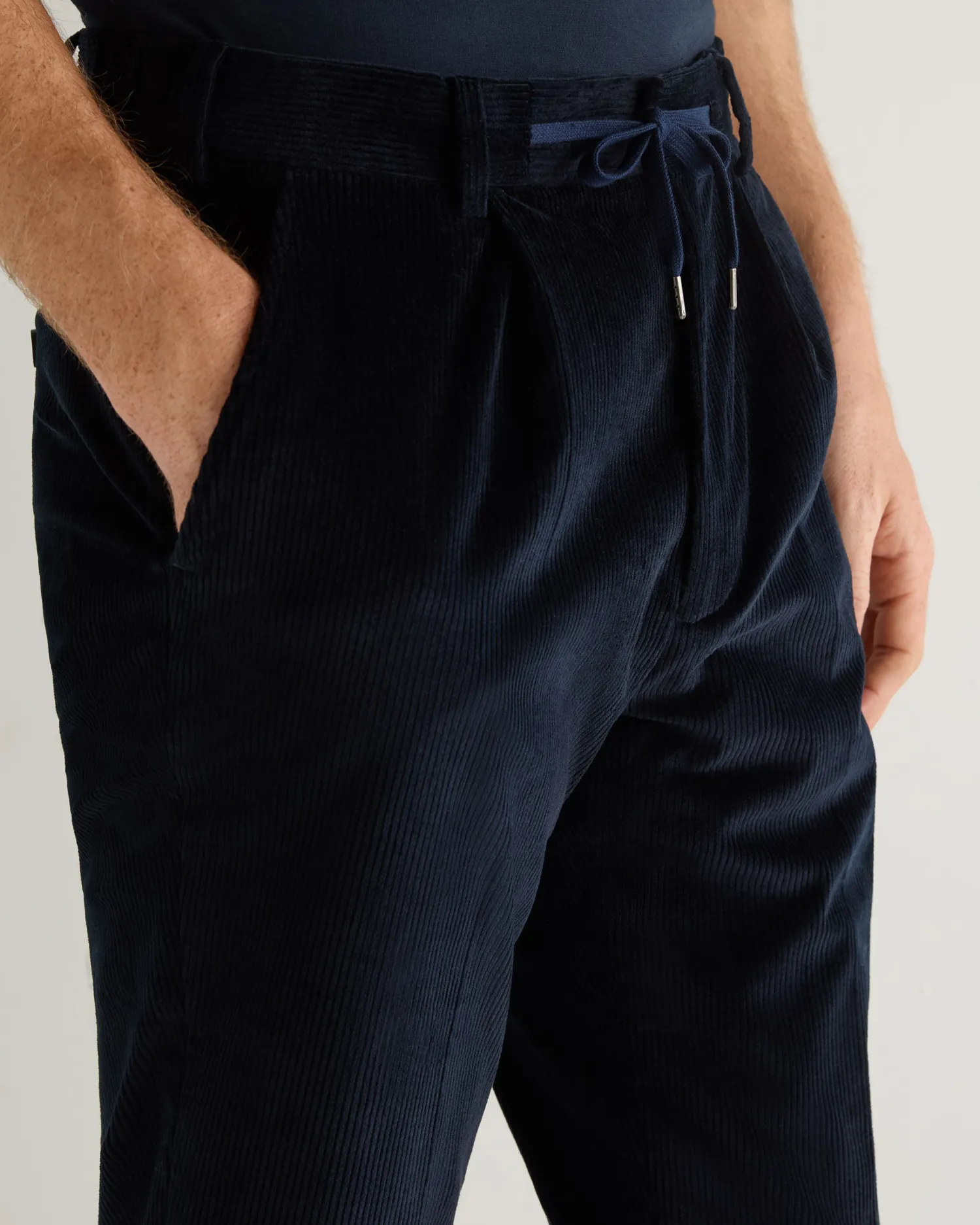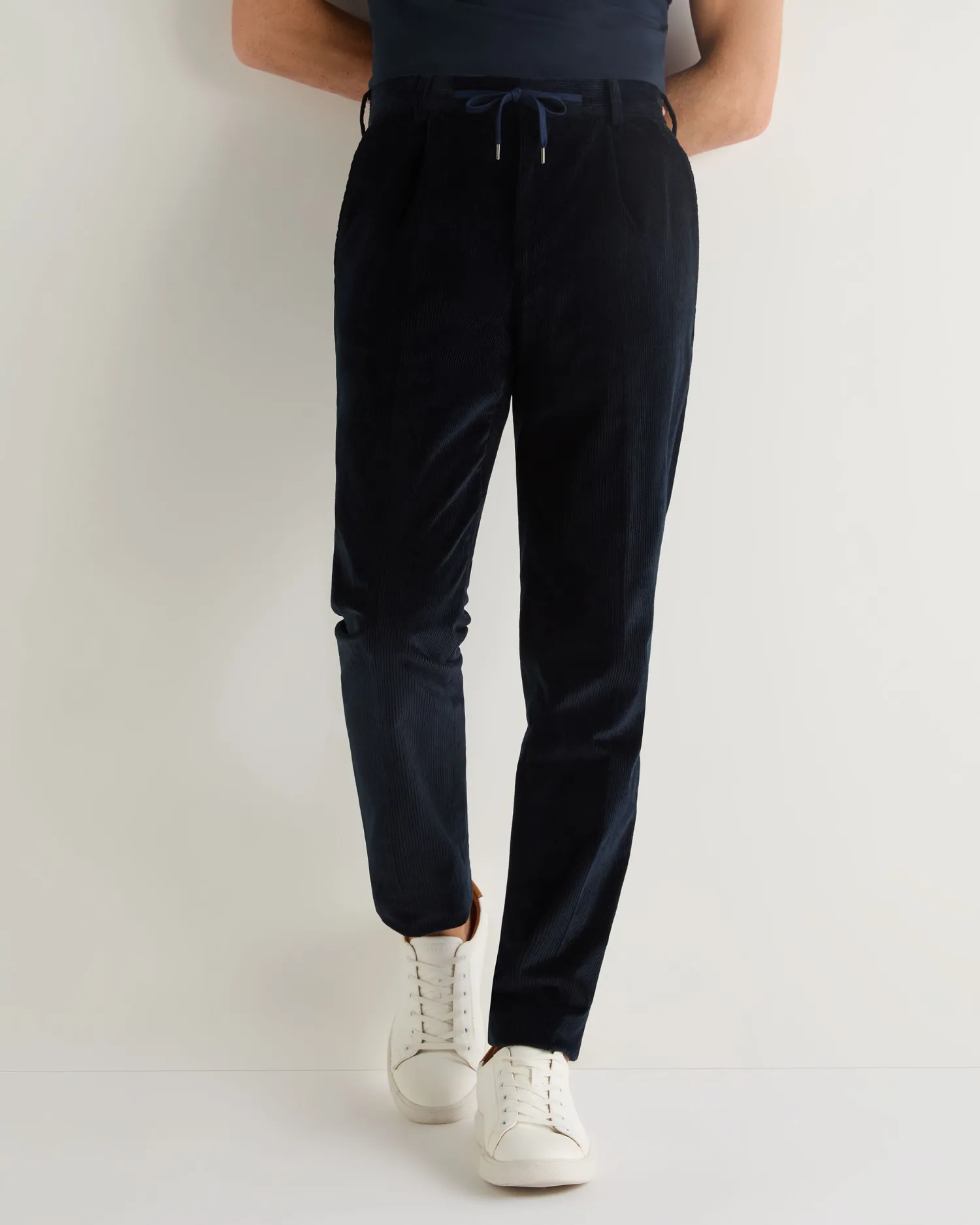 Introducing our Atrani trousers meticulously crafted in northern Italy from a cotton-cashmere corduroy. These distinguished trousers combine sophistication with versatile comfort. The refined pleats on the front emphasise the tapered leg profile while leisure fit of the elasticated waist allows for a perfect fit around the waist. Made from 91% cotton 7% cashmere and 2% elastane- Luxuriously comfortable and soft- Versatile trousers to either wear in daytime or evenings- Model is wearing size 32R- Care: Dry Clean Onlyn