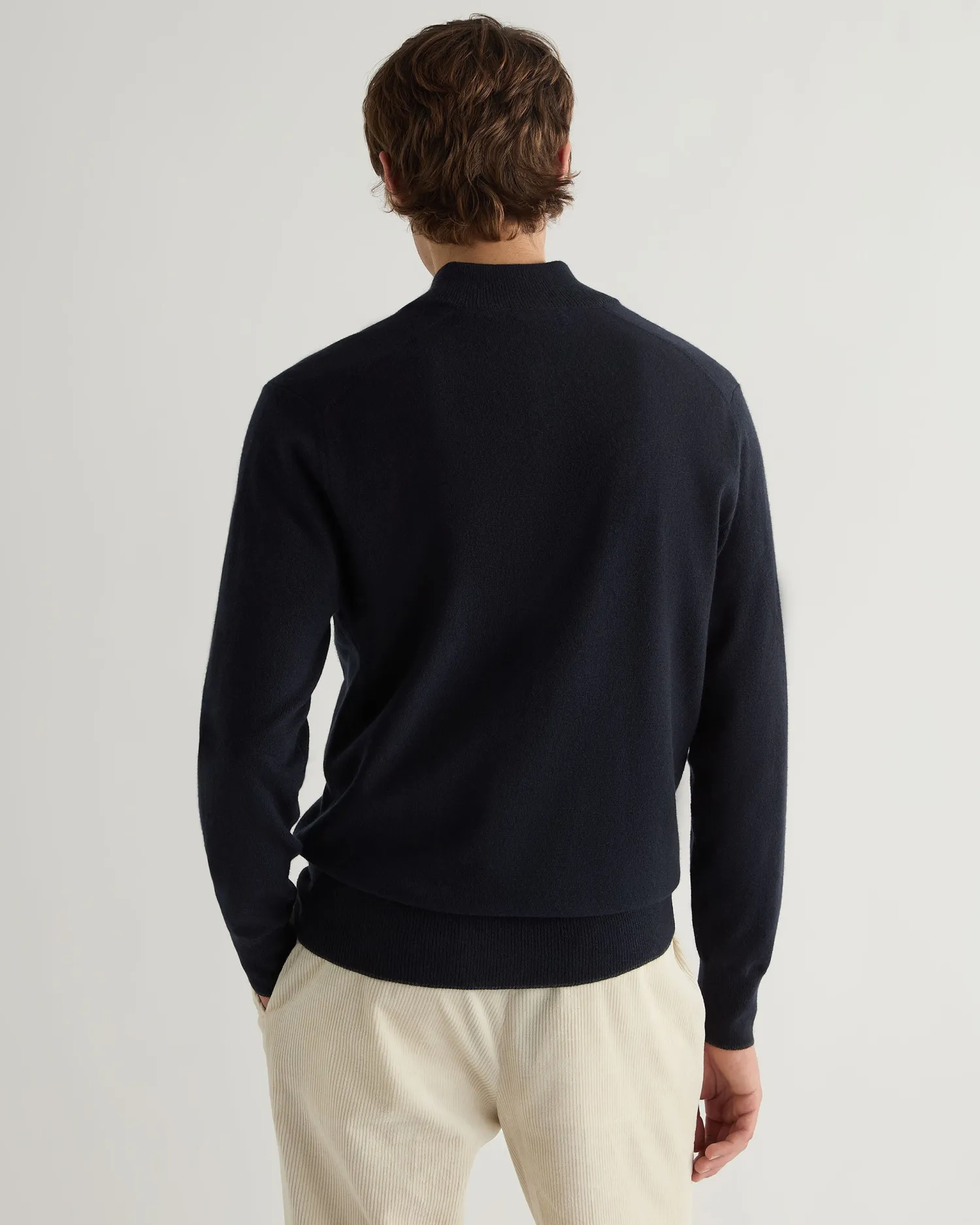 A previous popular gents’ style, brought back for the coming season. Made from 100% organic Mongolian cashmere – Dark charcoal contrast trim tipping on cuffs and hem as well as the inner placket and collar – Four button fastening – Great worn casually over a T-shirt or equally great with a more formal shirt – 2ply – Model is wearing size Medium – Care: Hand Wash Organic cashmere: organic dyes and detergents, free from fertilizer and pesticides, find out more here