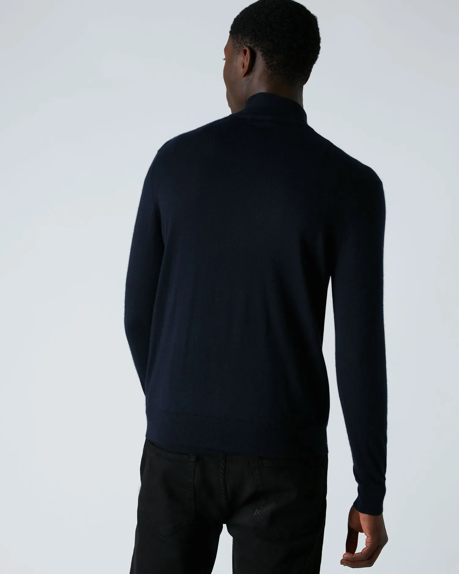 The Regent, our half zip fine gauge Summer weight sweater. Made using a worsted yarn comprising 70% Cashmere and 30% Silk – A lighter Summer-weight garment – The perfect transitional piece – 30% Silk gives a coolness to the touch – Elegant half zip style with Alcantara trim – Great worn over formal shirts and T shirts alike – A sartorial staple, an investment in enduring style- Our fine gauge products have a naturally slimmer fit, if you’d like a looser fit (like our other products) or are between sizes, we suggest you size up- Model is wearing size Medium- Care: Dry Clean OnlynFind our full range of Men’s Fine Gauge Cashmere Jumpers here.