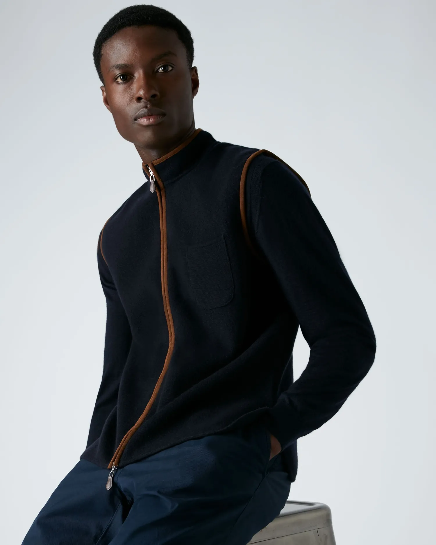 N.Peal’s finest talents combined here in the Milano suede trim gilet. 100% Mongolian organic cashmere – One breast pocket – Smart two way full length zip – Great layering piece – Milano stitch for extra texture and strength- 1Ply- Model is wearing size Medium- Care: Hand Wash Organic cashmere: organic dyes and detergents, free from fertilizer and pesticides, find out more herenFind our full range of Men’s Cashmere Gilets here.