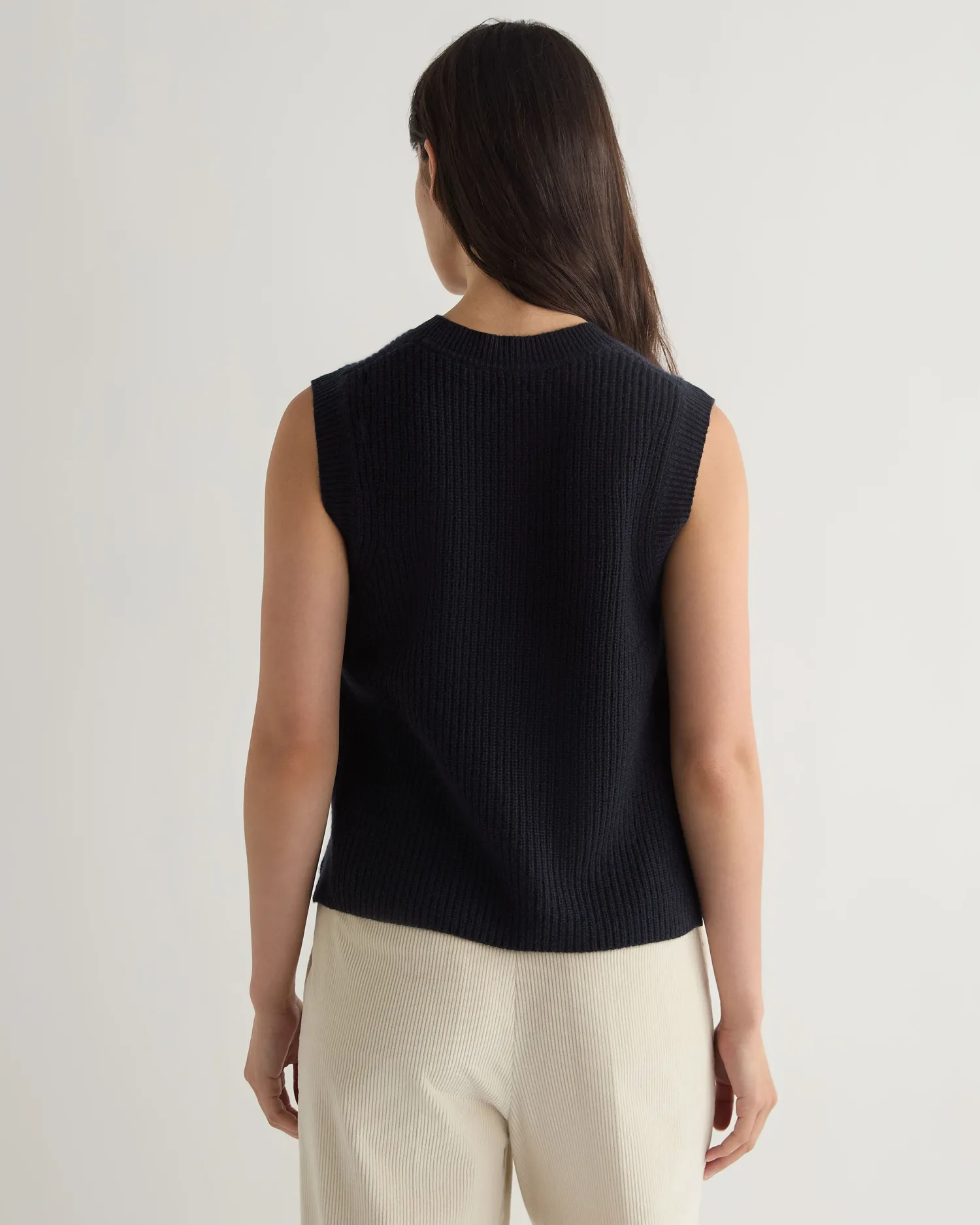 This completely new sleeveless ribbed sweater is the perfect blend of sophistication and comfort. Made from the finest cashmere, this versatile piece offers a luxurious feel against the skin while providing a sleek, contemporary look. Made from 100% Mongolian organic cashmere – Luxurious and comfortable – Popular ribbed knit design – Ideal for layering or wearing solo, suitable for various occasions – 2ply – Model is wearing size Small – Care: Hand Wash Organic cashmere: organic dyes and detergents, free from fertilizer and pesticides, find out more here