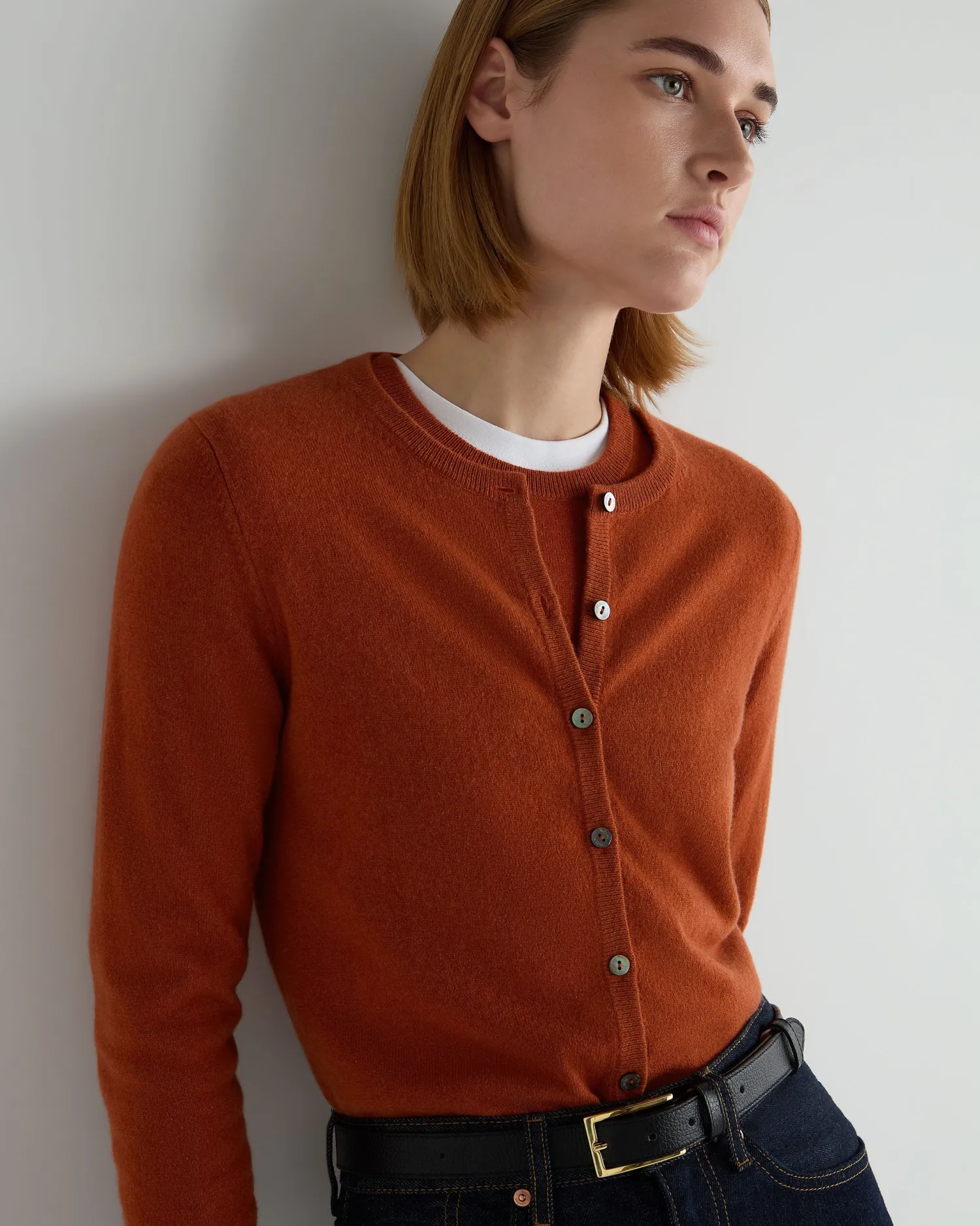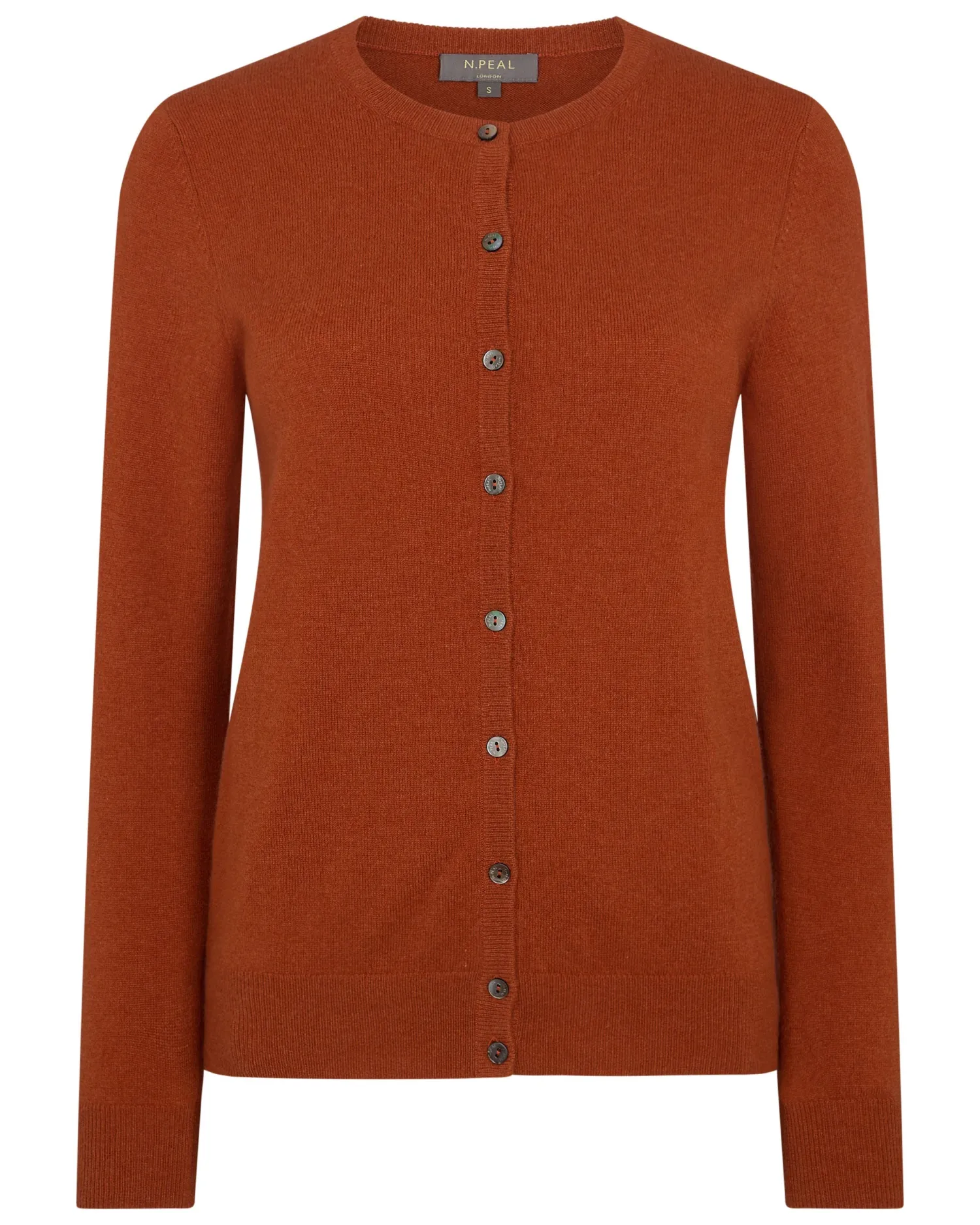 Welcoming another N.Peal favourite – the cashmere round neck cardigan. 100% Mongolian organic cashmere – Smart round neck design – Beautiful shell buttons – Supersoft against the skin – Enchanting array of colours – 1ply – Model is wearing size Small – Care: Hand Wash Organic cashmere: organic dyes and detergents, free from fertilizer and pesticides, find out more here