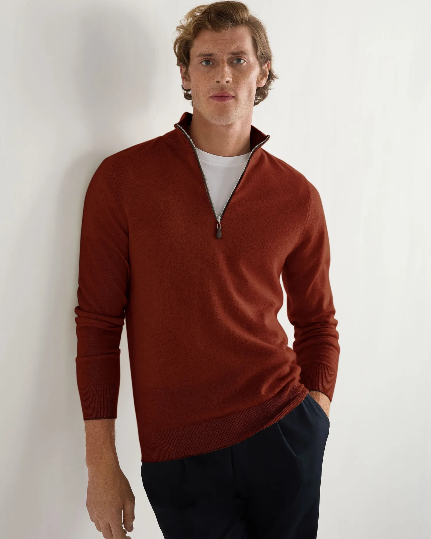 The Carnaby is shown here – a half zip cashmere sweater, beautiful in design and cut. 100% Mongolian organic cashmere – …
