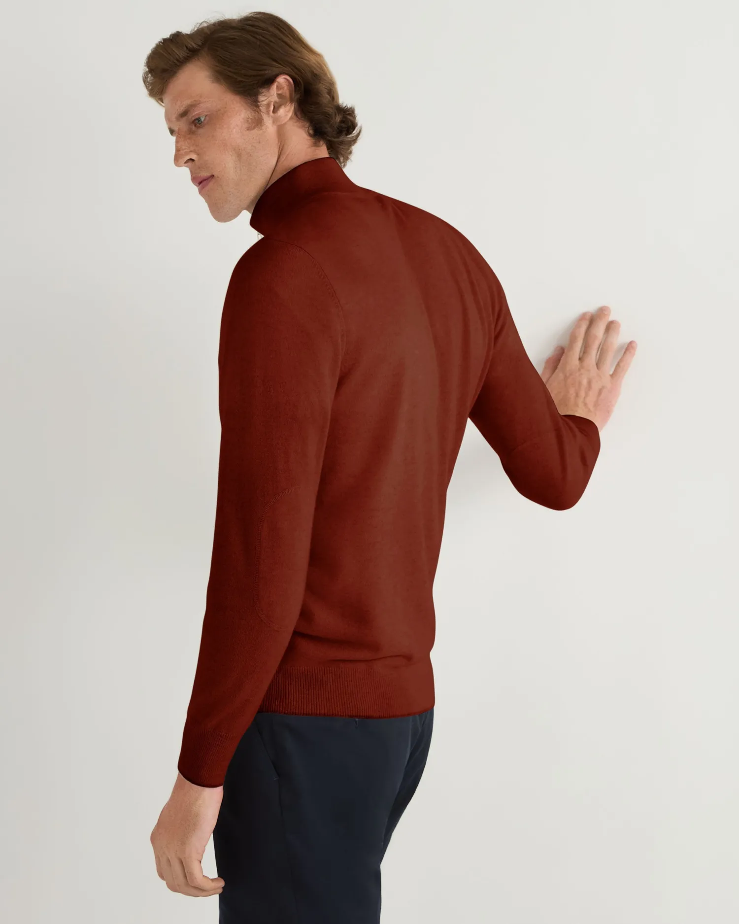 The Carnaby is shown here – a half zip cashmere sweater, beautiful in design and cut. 100% Mongolian organic cashmere – Elegant half zip – Alcantara piping – Smart leather toggle – Dark charcoal grey contrast trims- Perfect layering piece – Superb colour selection – 1ply – Model is wearing size Medium – Care: Dry Clean Only Organic cashmere: organic dyes and detergents, free from fertilizer and pesticides, find out more here