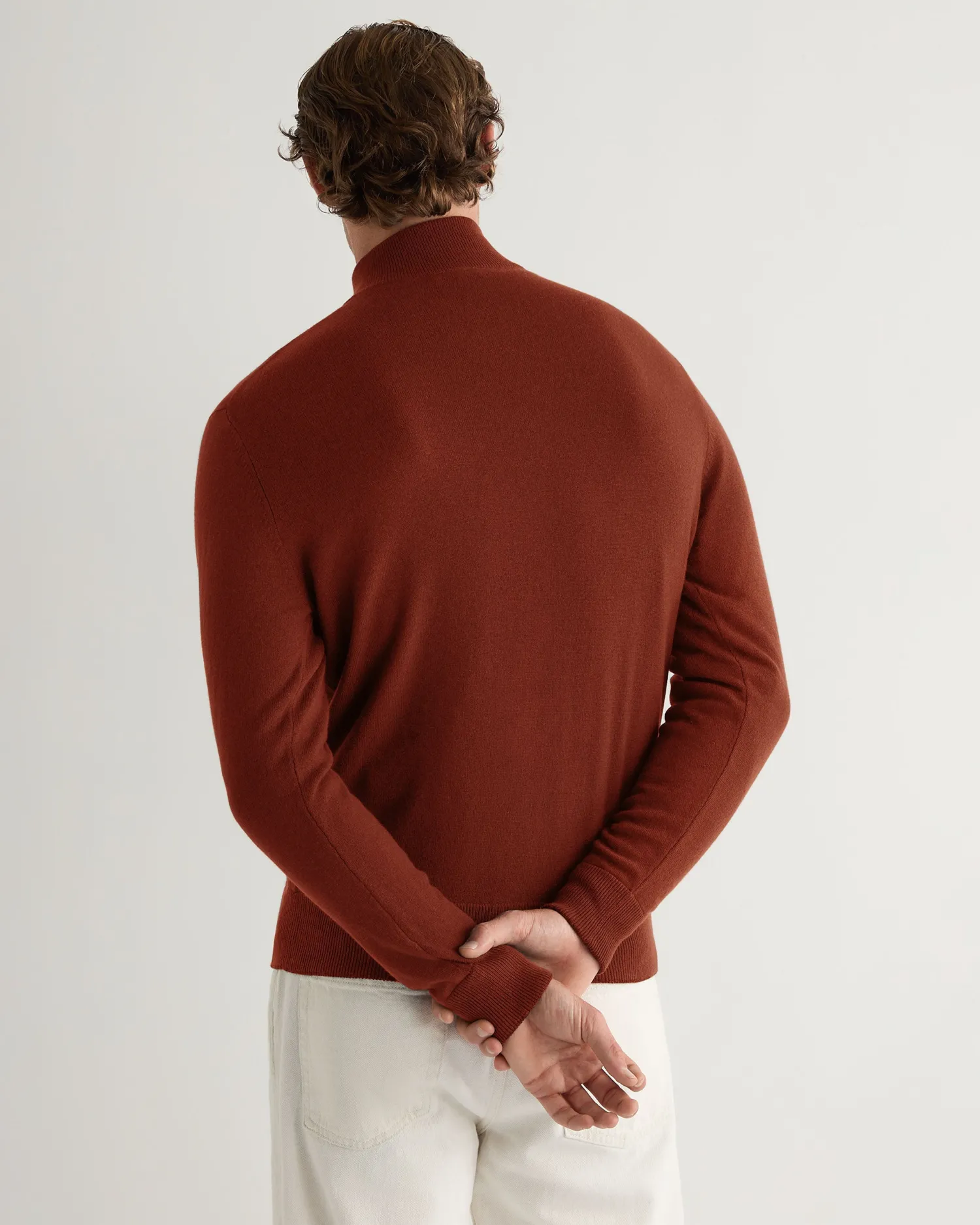 The Knightsbridge zip cashmere sweater, a wonderfully versatile design to add to your cashmere collection. 100% Mongolian organic cashmere – Full length zip with smart leather toggle – Simple design with dark charcoal grey contrast trims – Perfect layering piece – 1ply – Model is wearing size Medium – Care: Dry Clean Only Organic cashmere: organic dyes and detergents, free from fertilizer and pesticides, find out more here
