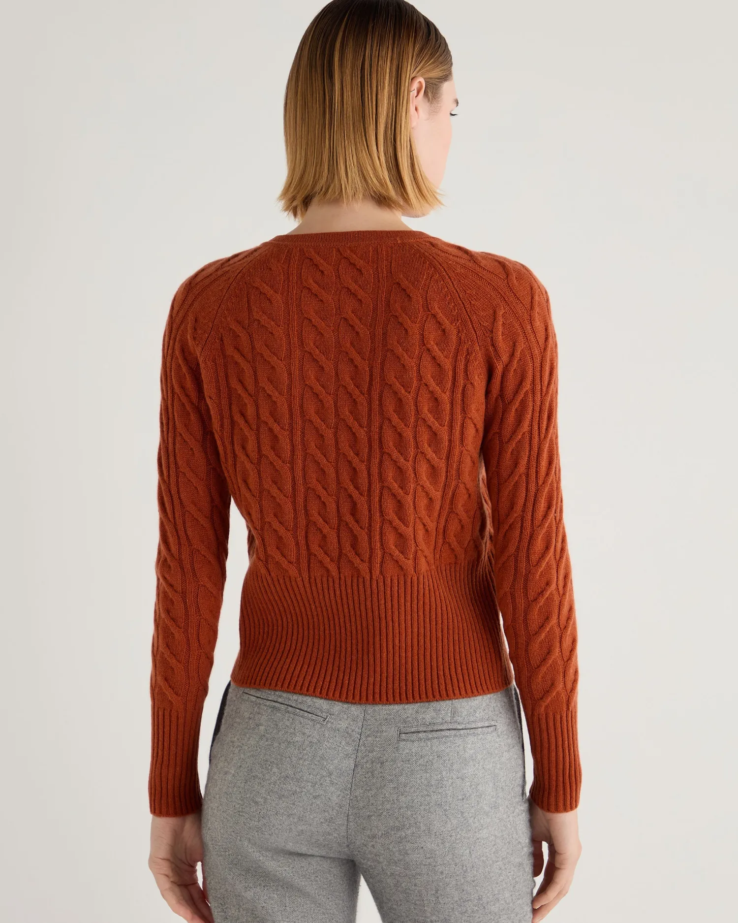 A wonderfully simple and stylish cable cashmere cardigan. Crafted from 100% Mongolian organic cashmere – Popular cropped cardigan style – Modern cable texture – Mother of pearl buttons – Deep ribbed hem and matching cuffs – 2ply – Model is wearing size Small – Care: Hand Wash Organic cashmere: organic dyes and detergents, free from fertilizer and pesticides, find out more here