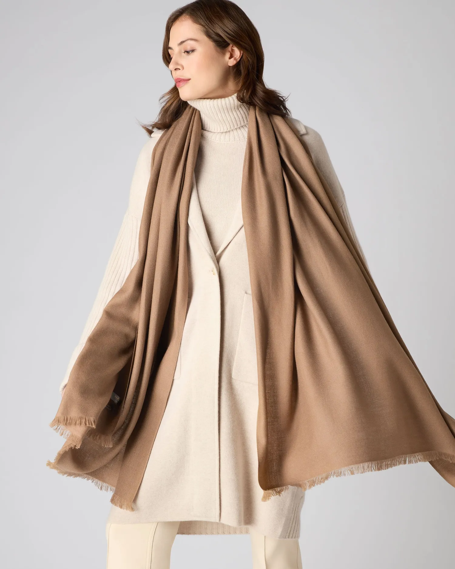 N.Peal’s world famous cashmere woven pashmina shawl, stylish and beautiful to wear. n 100% Mongolian Superfine Cashmere Available in an enchanting array of colours Measures 200x90cm Would make a perfect gift Care: Dry Clean Only