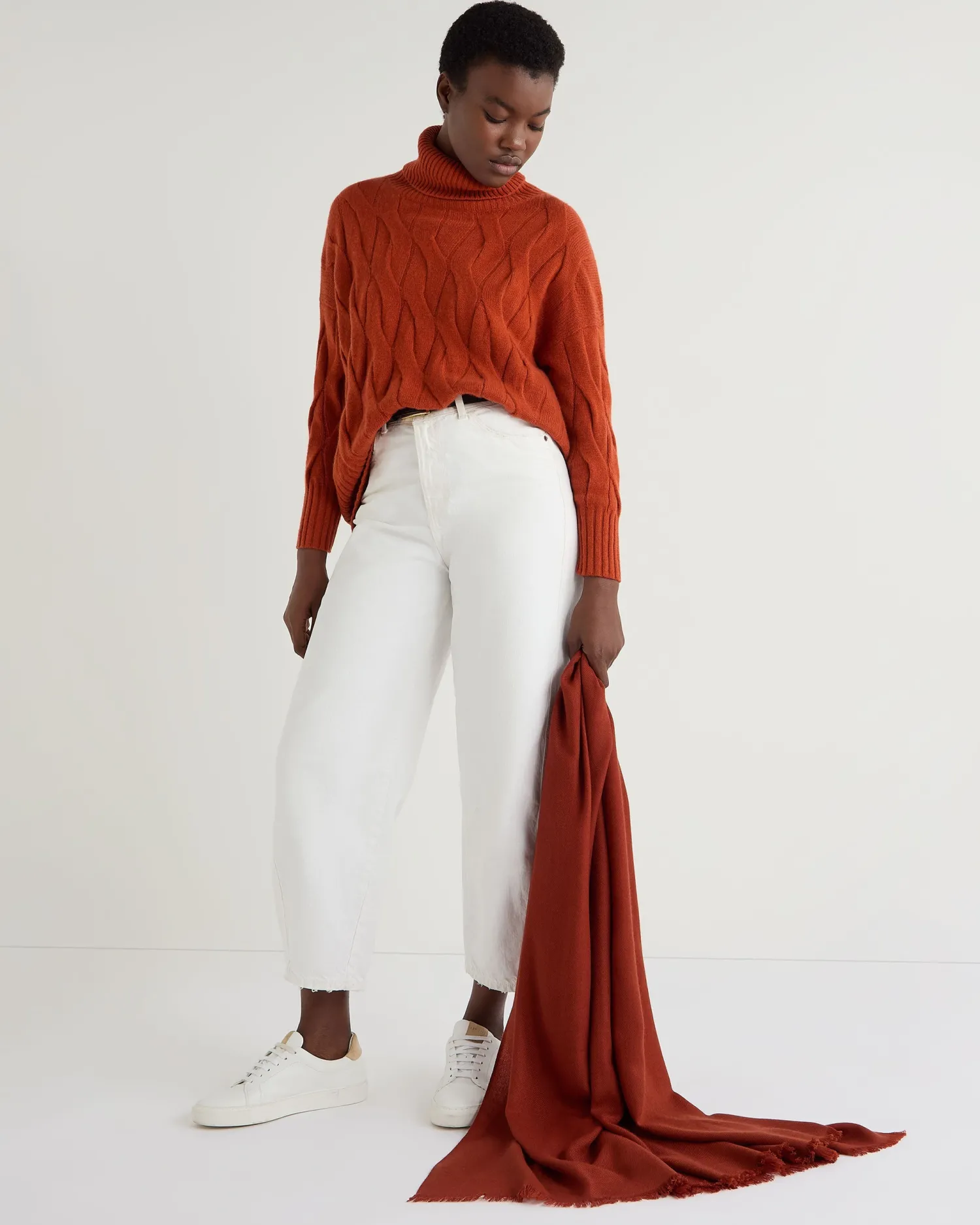 N.Peal’s world famous cashmere woven pashmina shawl, stylish and beautiful to wear. n 100% Mongolian superfine cashmere Available in an enchanting array of colours Measures 200x90cm Would make a perfect gift Care: Dry Clean Only