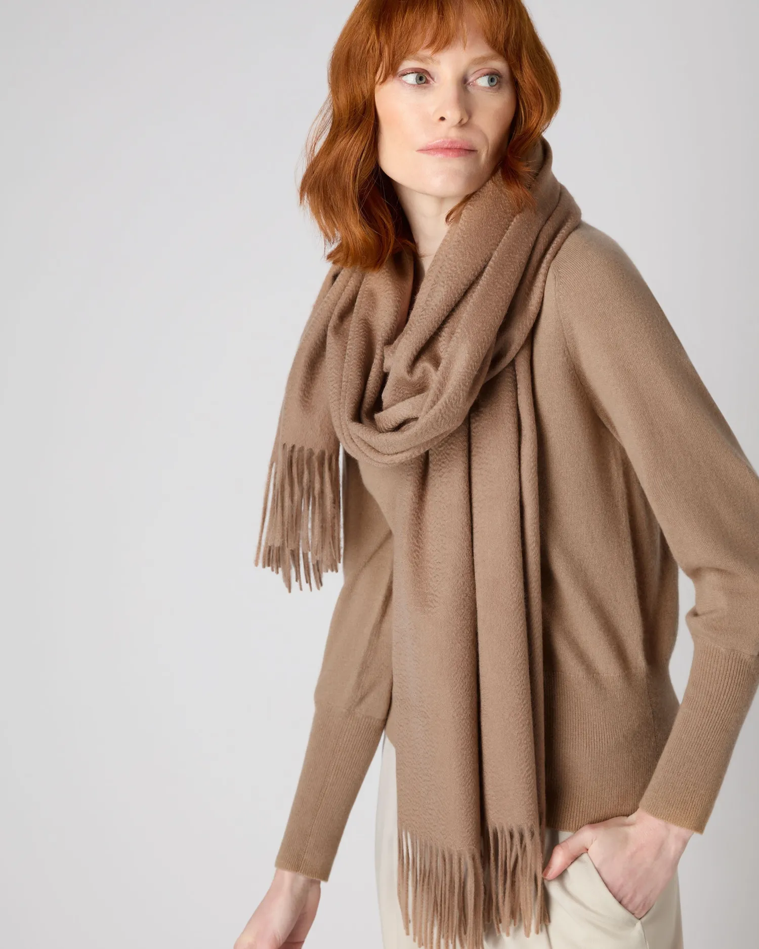 Here is N.Peal’s beautiful cashmere woven shawl. n Made from 100% Mongolian Cashmere A favourite with N.Peal aficionados Measures 200x75cm plus delicate fringe edging at both ends Woven cashmere with a luxurious finish Available in a beautiful selection of colours Perfect for travelling Can double as a bed or sofa throw Would make a generous gift Care: Dry Clean Only