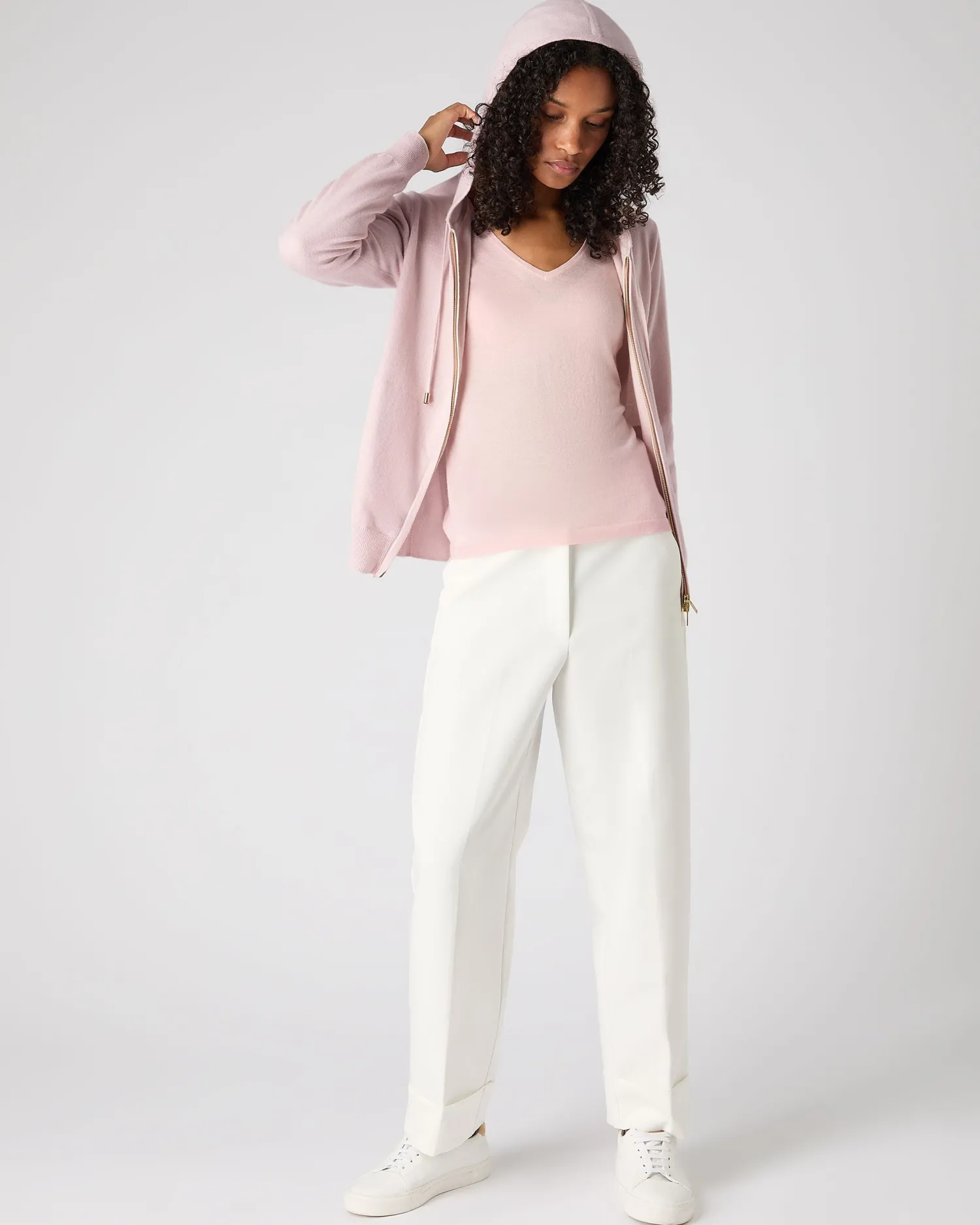 Wonderful luxury meets leisure here in the shape of the perfect cashmere hoodie. 100% Mongolian Organic Cashmere – Super comfortable loungewear – Smart gold full length two way zip – Two pockets – New ivory contrast trim- Great with gym kit – Smart with jeans – Metal trimmed drawstring – Model is wearing size Small – Care: Hand Wash Organic cashmere: organic dyes and detergents, free from fertilizer and pesticides, find out more here