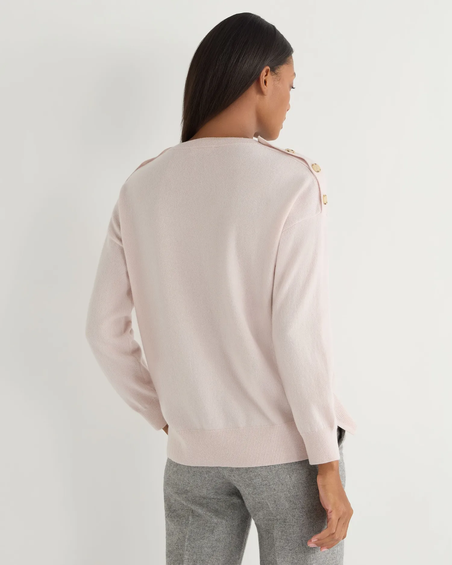 Sure to be a popular sweater for this season, with button detail on both shoulders. Made from 100% organic Mongolian cashmere of the very highest quality- Elegant plain knit stitch with matching ribbing on cuffs and hem- Looser fit casual style for leisurely weekends- Button detail on both shoulders, can be worn open or closed- 1ply- Model is wearing size Small- Care: Hand Wash Organic cashmere: organic dyes and detergents, free from fertilizer and pesticides, find out more heren