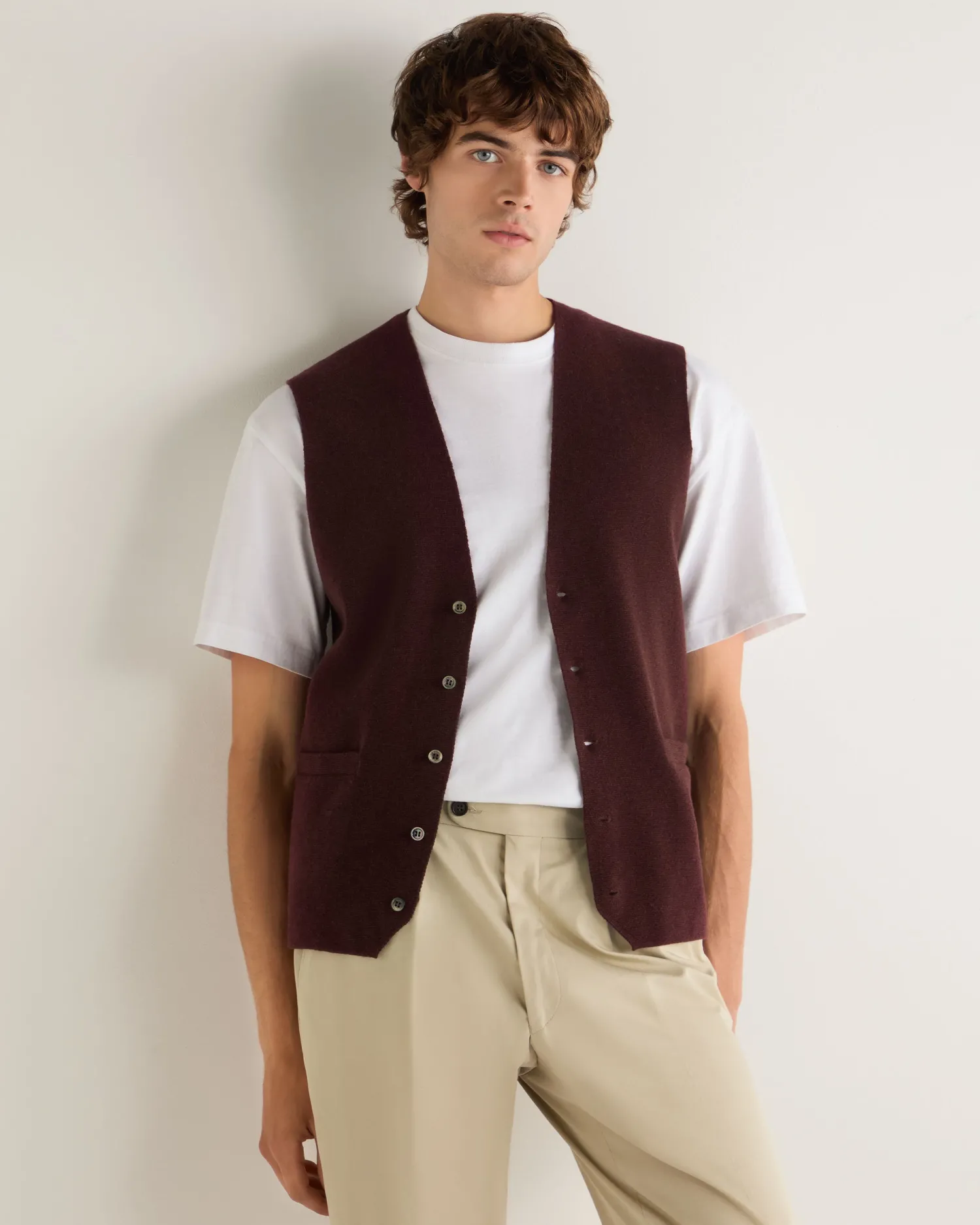 Here we have the Chelsea waistcoat knitted in Milano stitch cashmere, truly beautiful. 100% organic cashmere – Milano knit for added texture – Perfect casual or smarter wear – Five smart buttons – Two pockets – Elegant and flattering design – Great under a jacket for an extra layer – 1ply – Model is wearing size Medium – Care: Dry Clean Only Organic cashmere: organic dyes and detergents, free from fertilizer and pesticides, find out more here