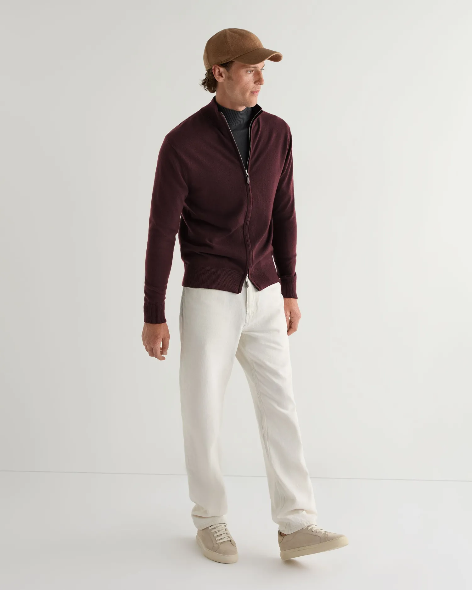 The Knightsbridge zip cashmere sweater, a wonderfully versatile design to add to your cashmere collection. 100% Mongolian organic cashmere – Full length zip with smart leather toggle – Simple design with navy blue contrast trims – Perfect layering piece – 1ply – Model is wearing size Medium – Care: Dry Clean Only Organic cashmere: organic dyes and detergents, free from fertilizer and pesticides, find out more here