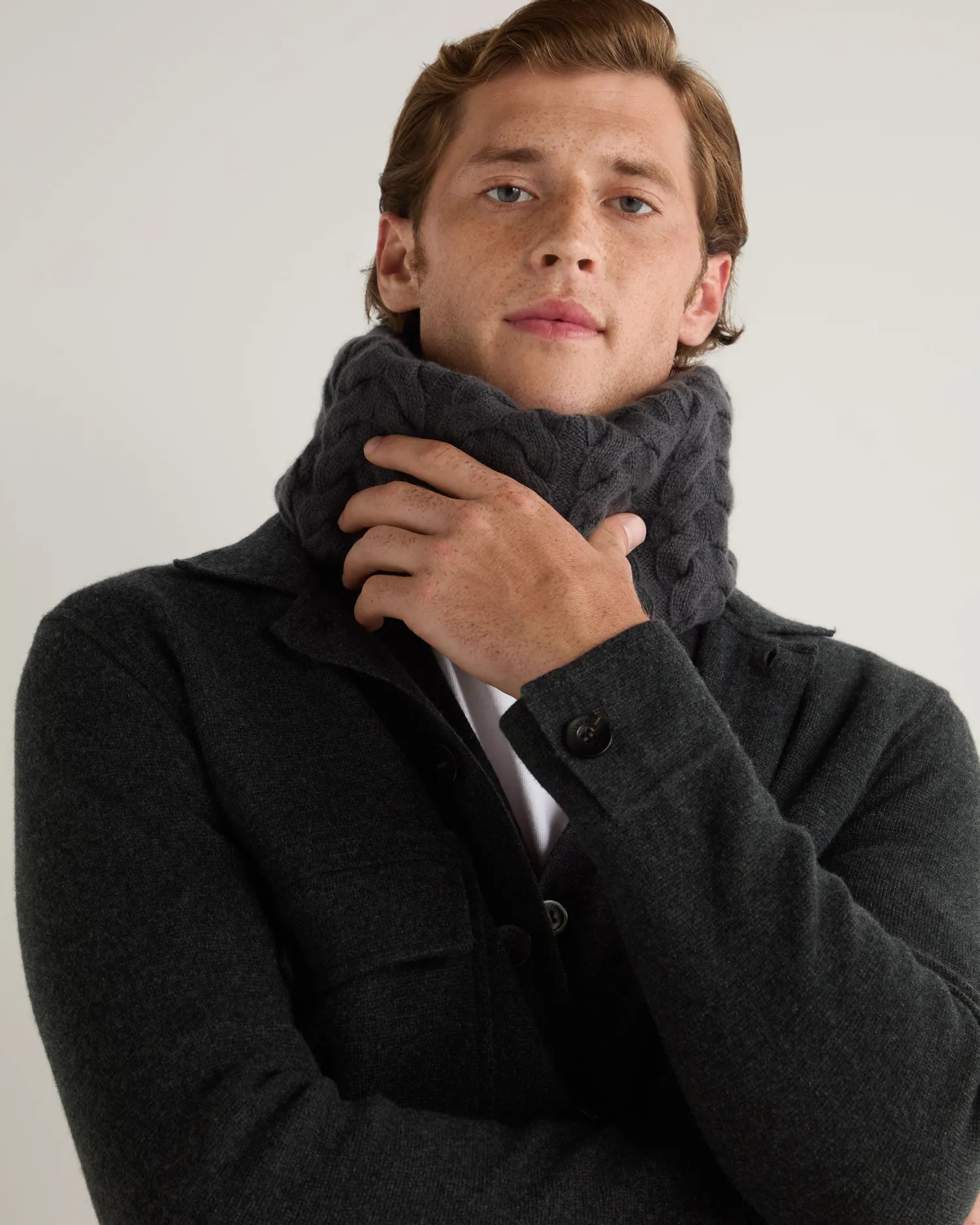 A luxurious cable snood to keep you warm this winter. Made from 100% organic Mongolian organic cashmere – knitted in our luxurious and eye catching cable design – measures 45cm deep, with 62cm in total circumference – Fabulous teamed with our matching gloves and hat – The perfect gift – 2ply – Care: Hand Wash Organic cashmere: organic dyes and detergents, free from fertilizer and pesticides, find out more here