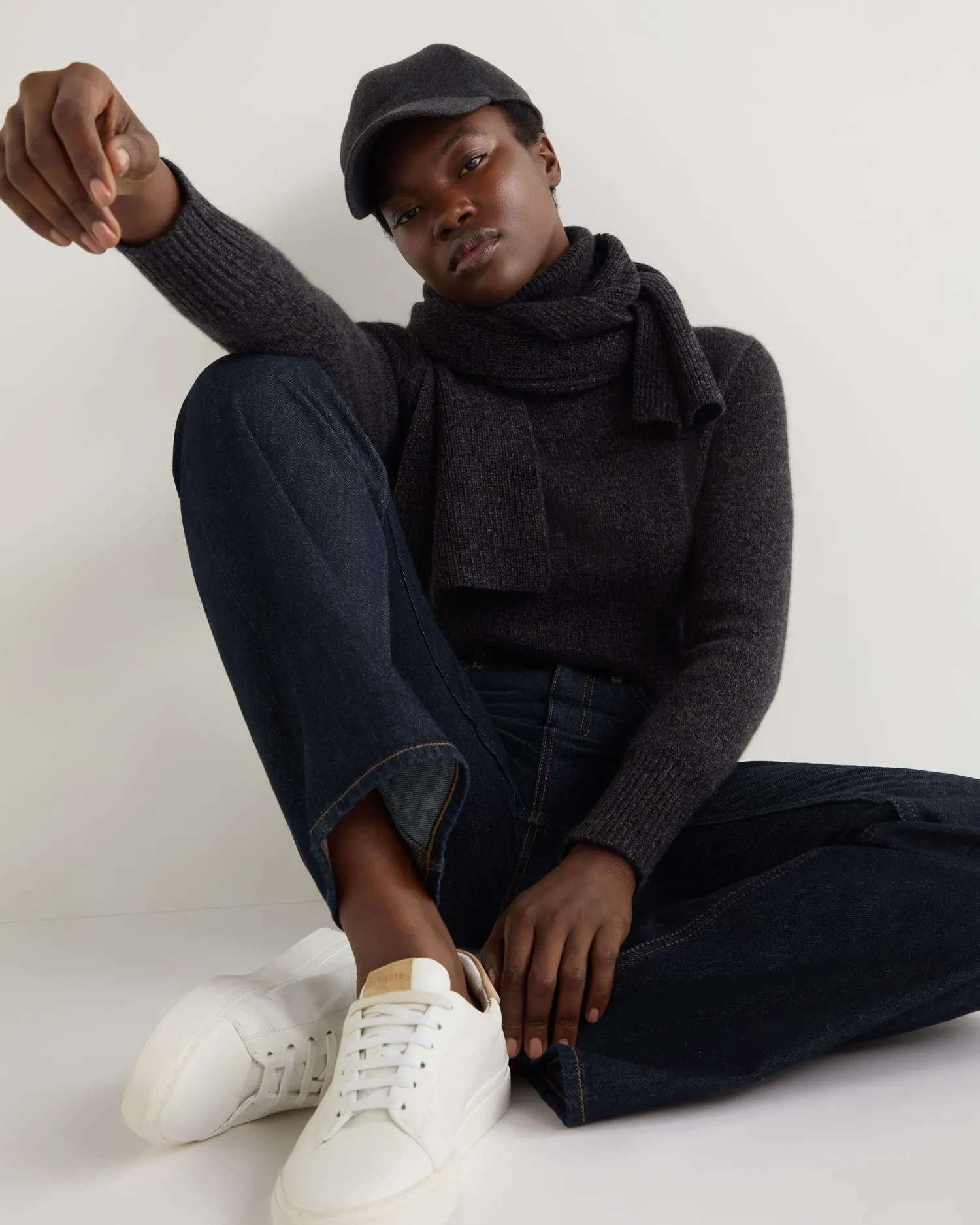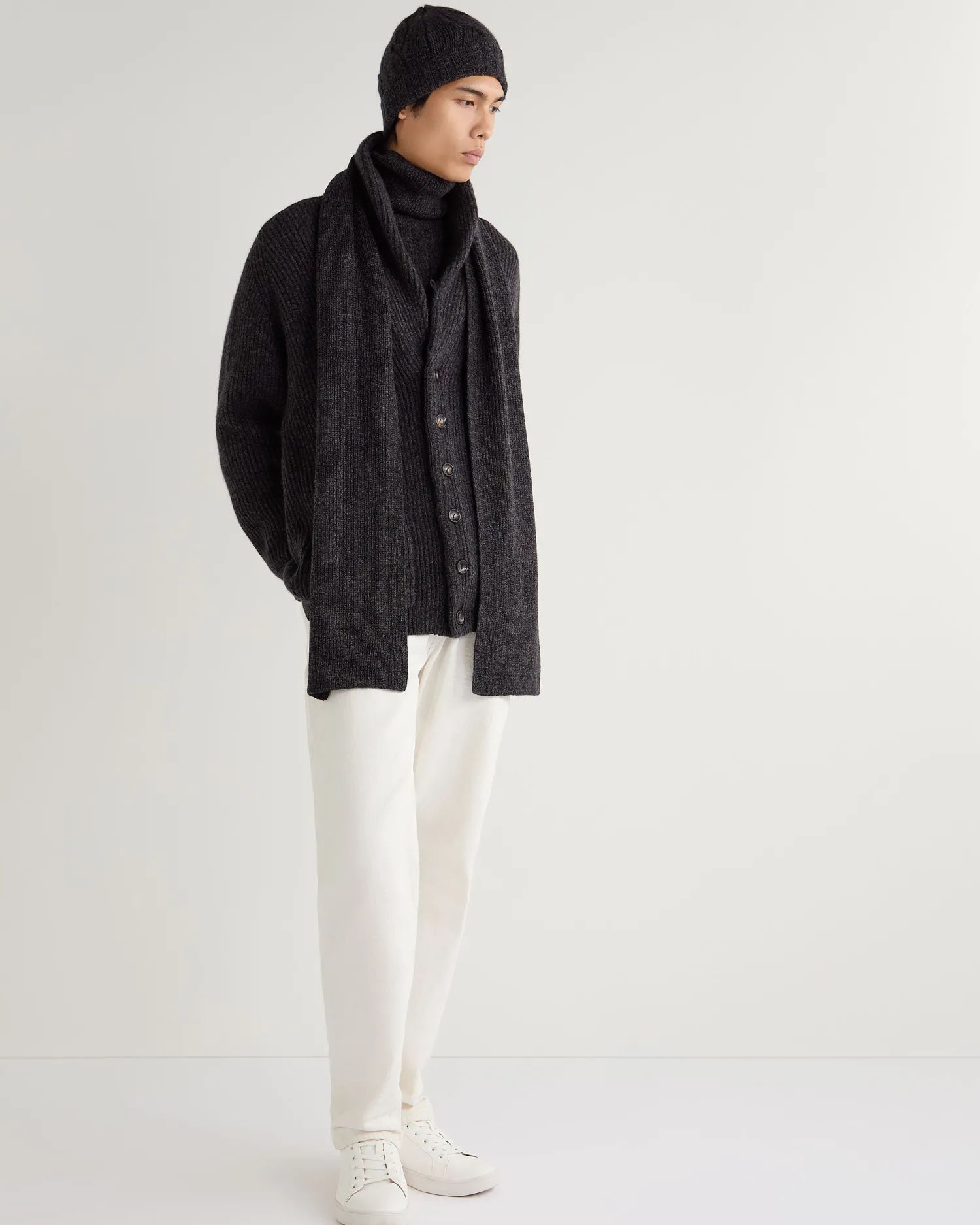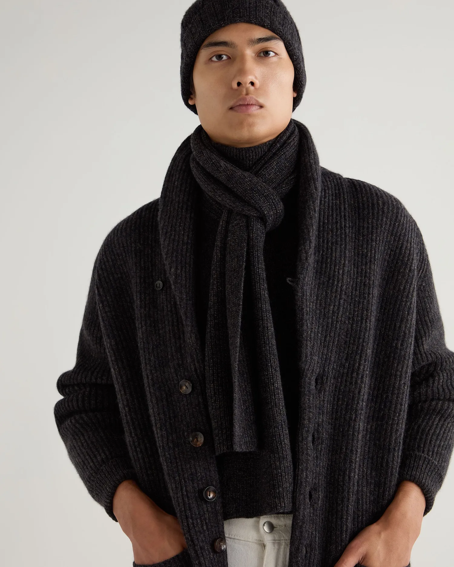 This amazing cashmere ribbed scarf looks the part and is super warm and cosy.n Made from 100% Mongolian cashmere Knitted in an attractive ribbed pattern Measures 185x20cm Perfect addition to the weekend wardrobe Team with our ribbed gloves and hats Would make a wonderful gift 3ply Care: Hand Wash