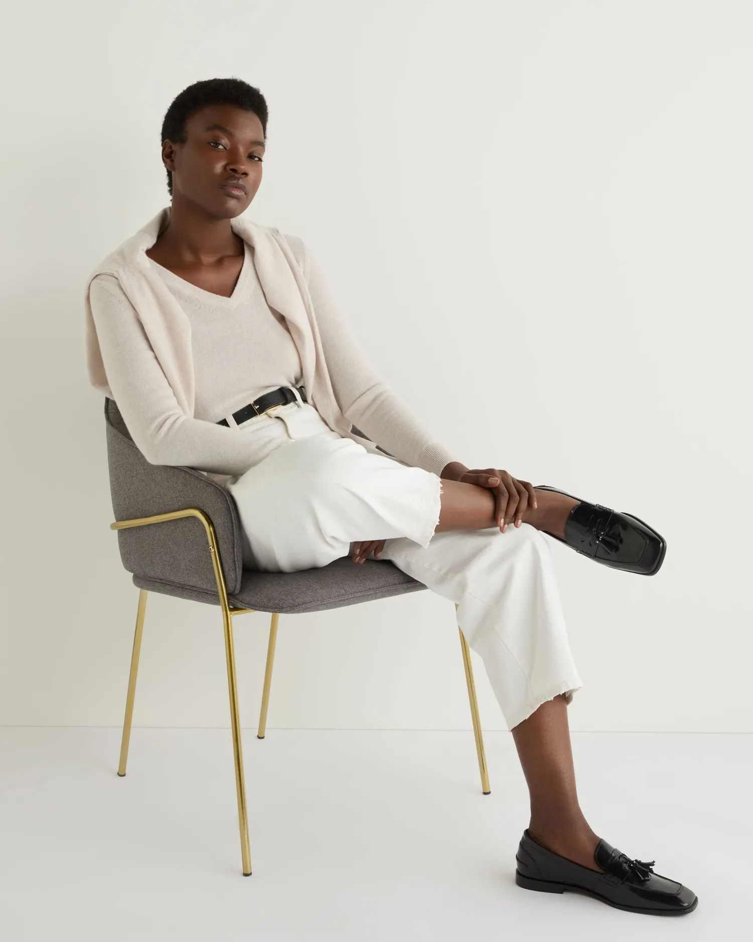 The perfect cashmere V neck sweater, in beautiful colours. Made from 100% Mongolian organic cashmere – Elegant v neck shape – Matching ribbed cuffs and hem – Superbly soft to touch – Cut beautifully to flatter the figure – Great selection of colour options – 1ply – Model is wearing size Small – Care: Hand Wash Organic cashmere: organic dyes and detergents, free from fertilizer and pesticides, find out more here