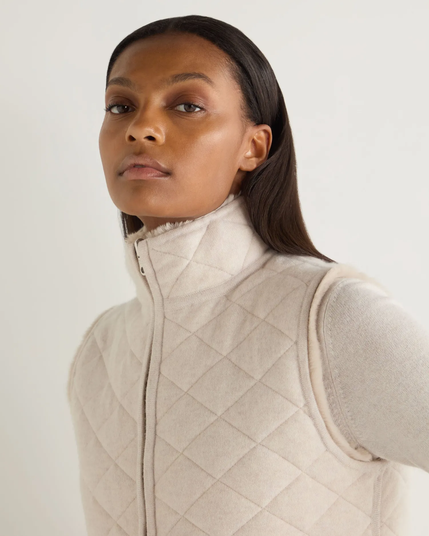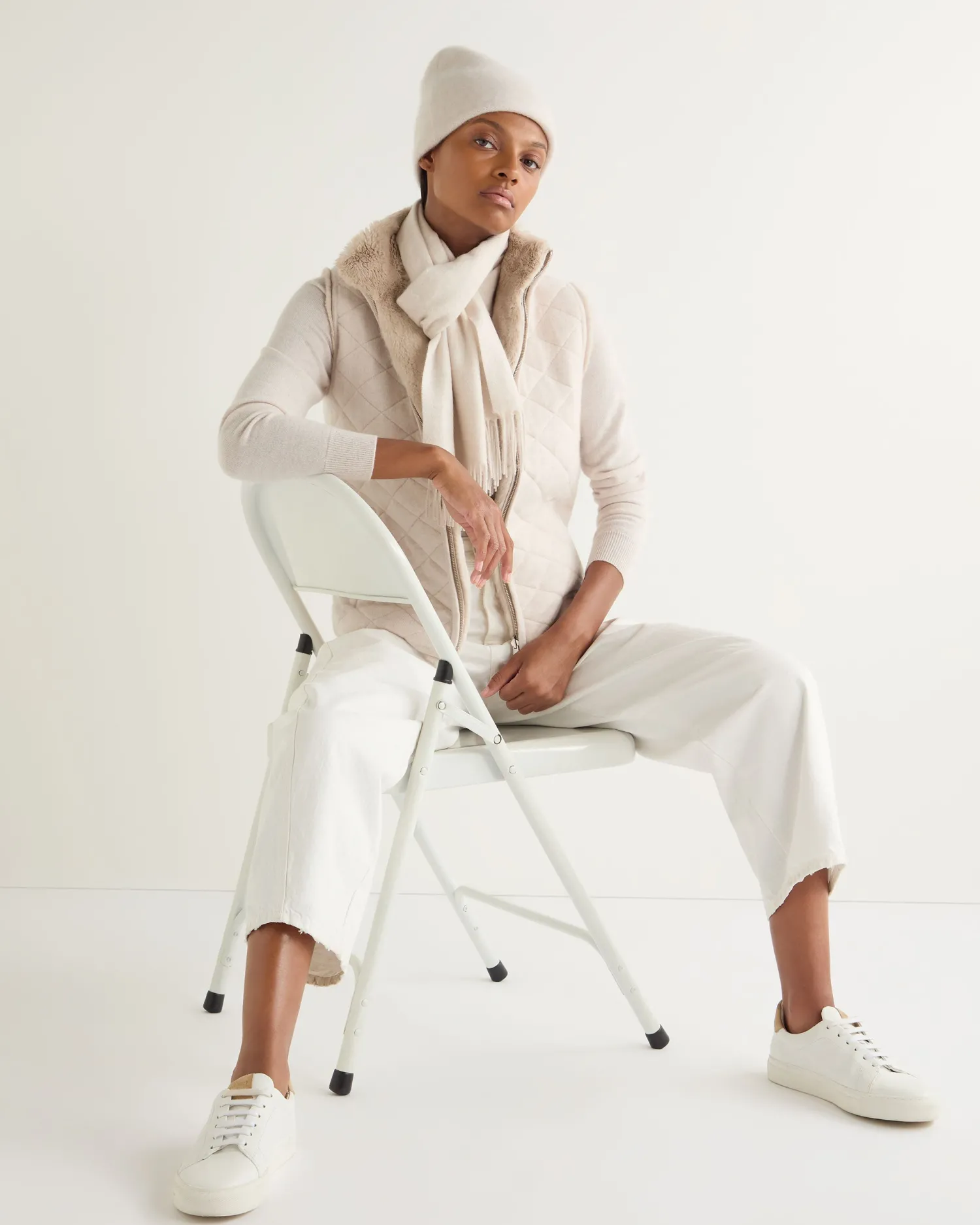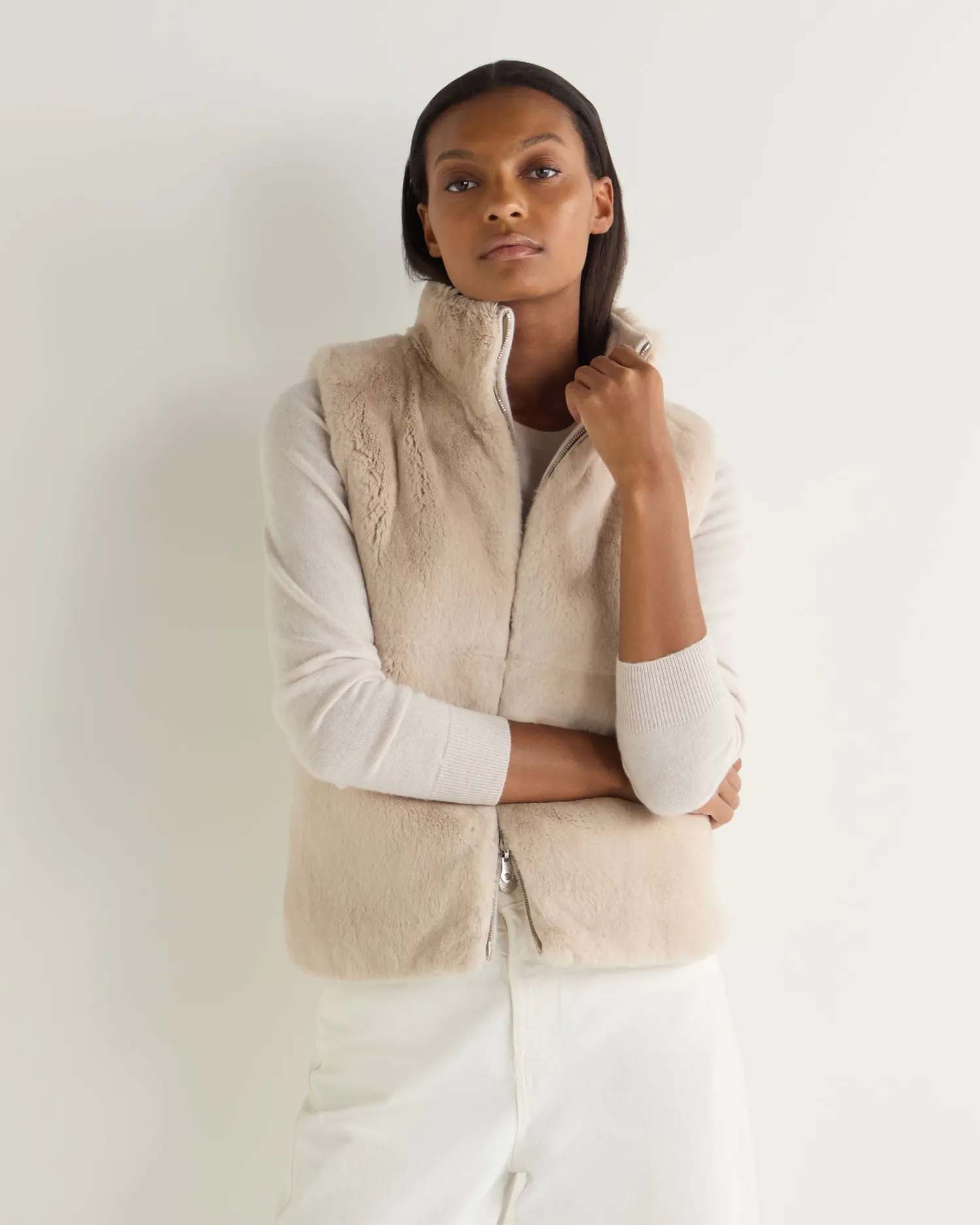 Our gilets are always popular, here is a great new style to add to the N.Peal collection. Made from 100% Mongolian cashmere with a rex fur lining – Elegant diamond style body – Snow grey full rex fur lining – Full length two-way zip – Side pockets – Excellent layering piece- 1ply – Model is wearing size Small – Care: Dry Clean Only